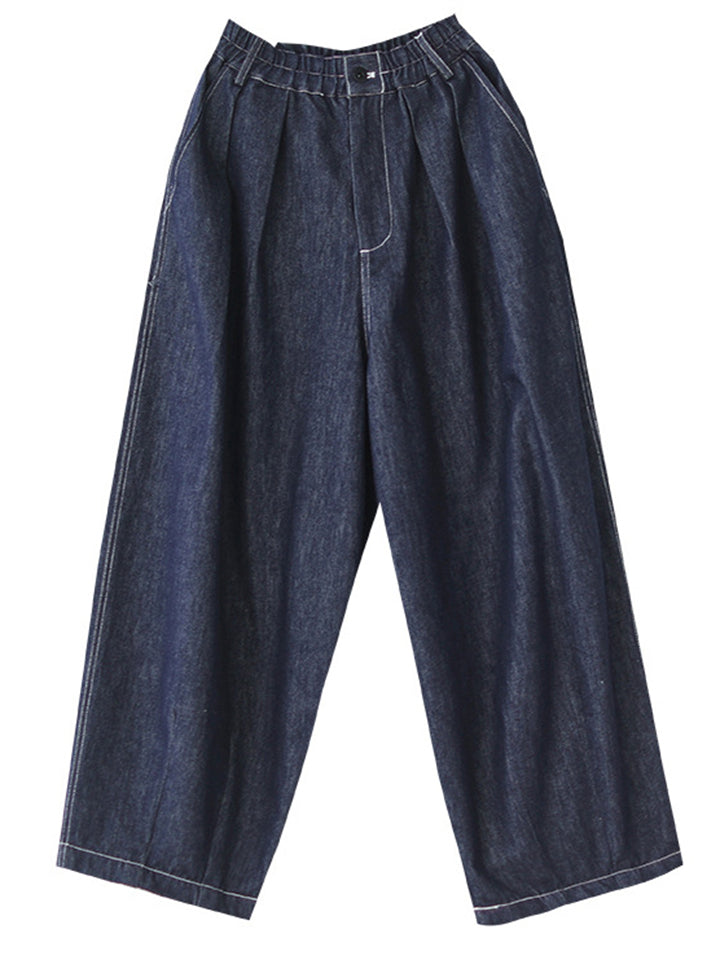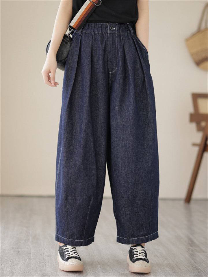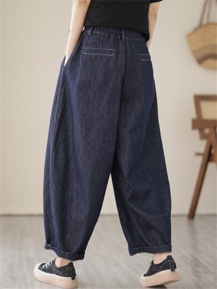 Women's Casual Solid Color Pockets Harem Denim Jeans