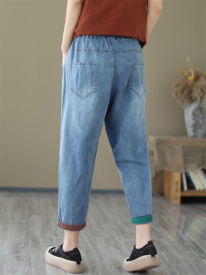 Summer Women's Patchwork Wide Leg Cropped Jeans