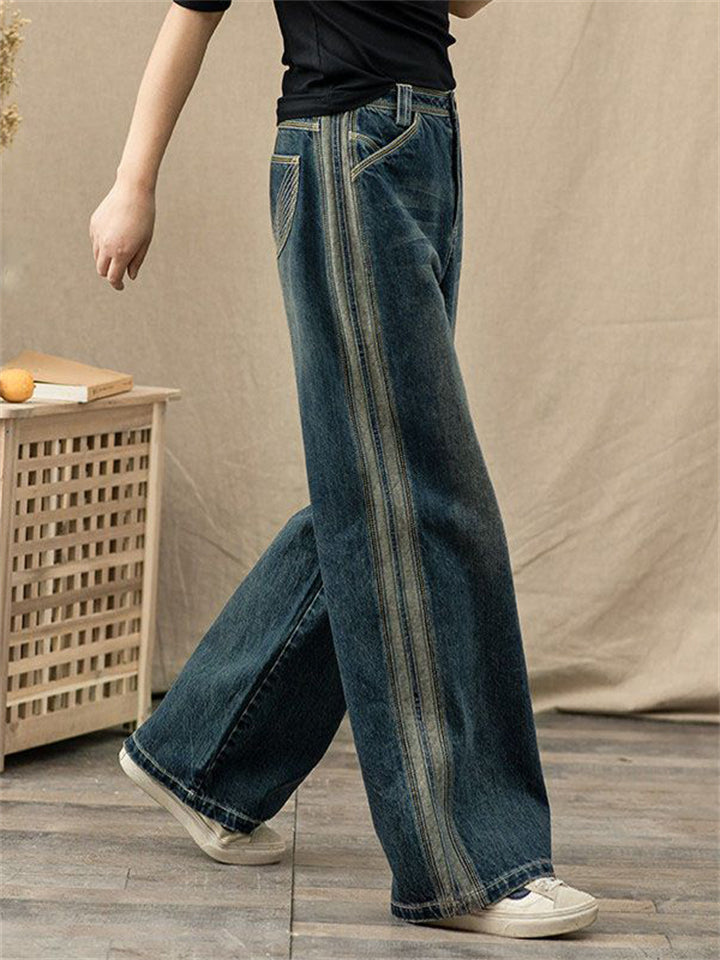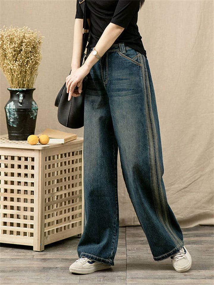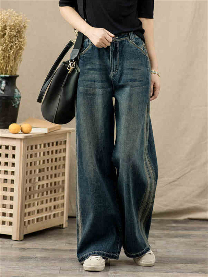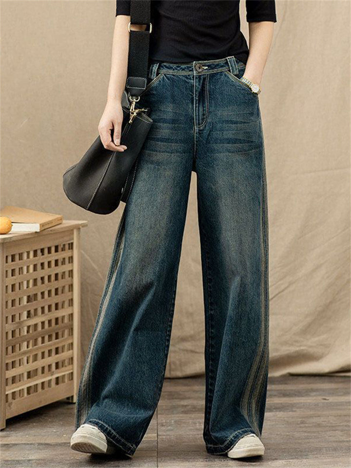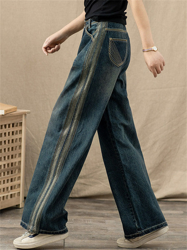Women's Retro Distressed Wide-Leg Straight Cropped Jeans