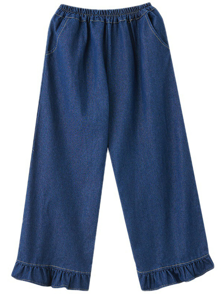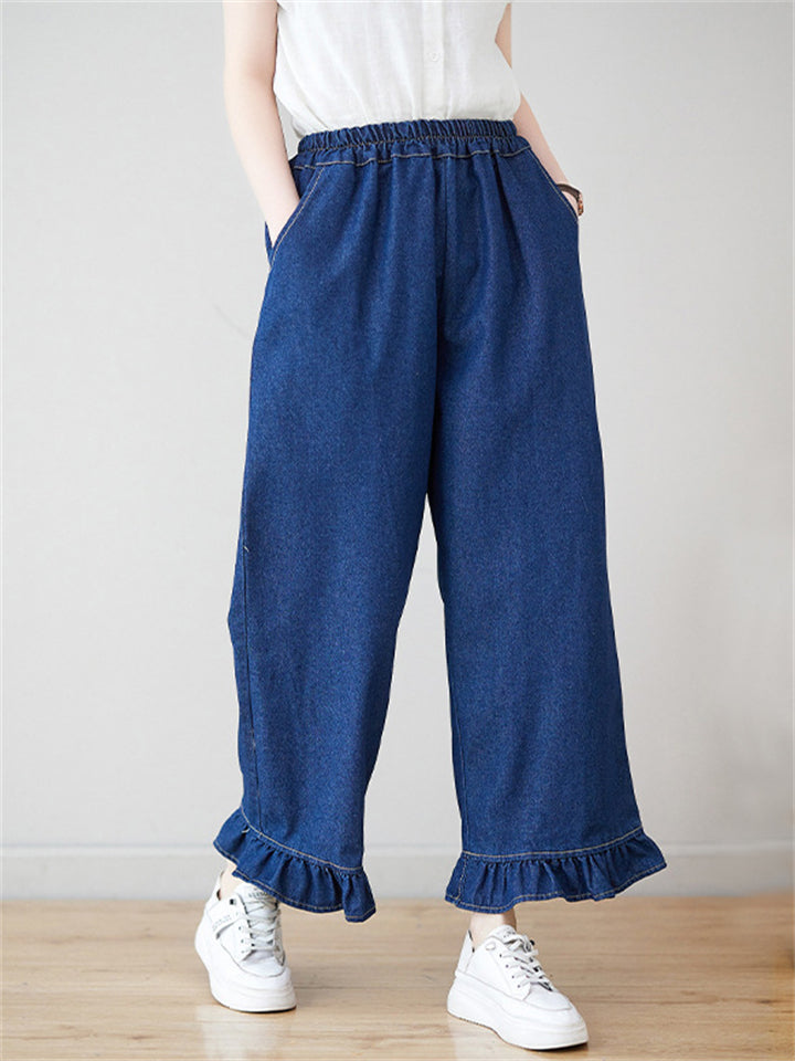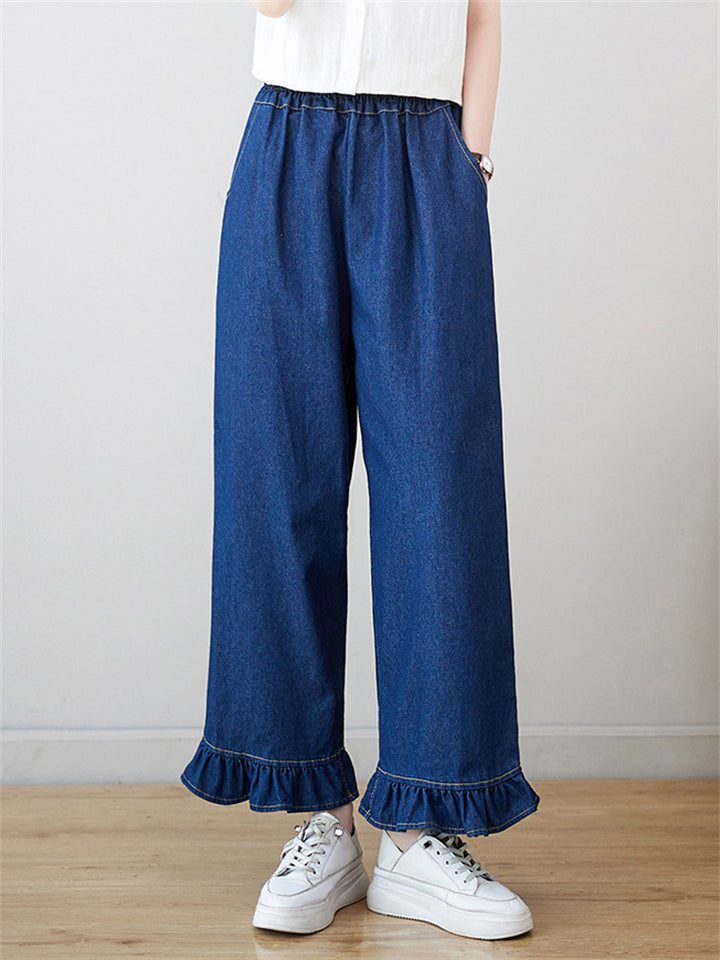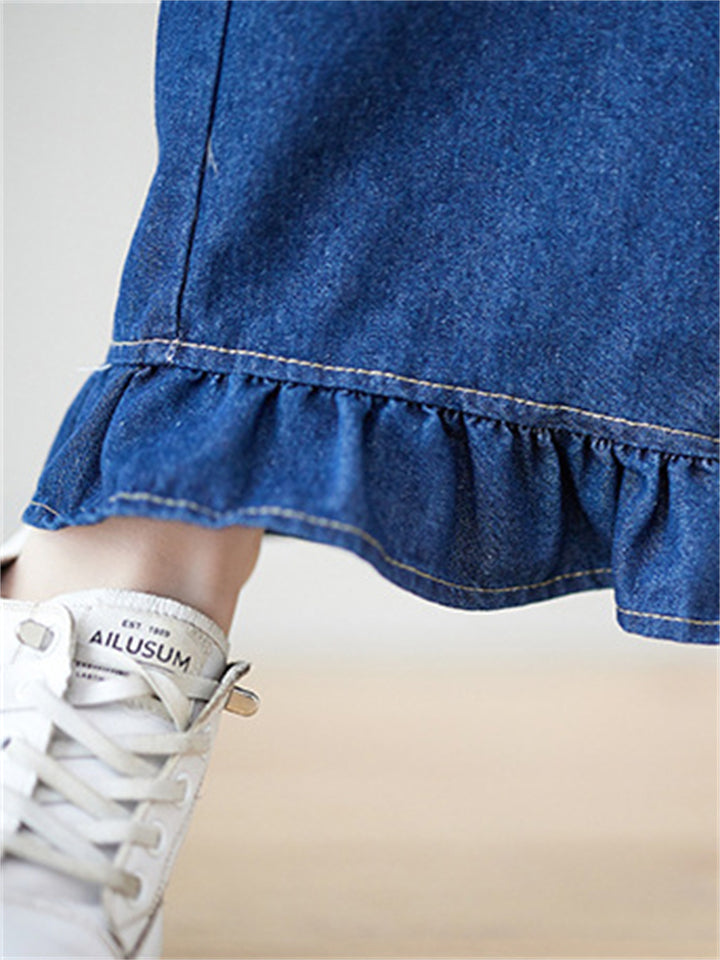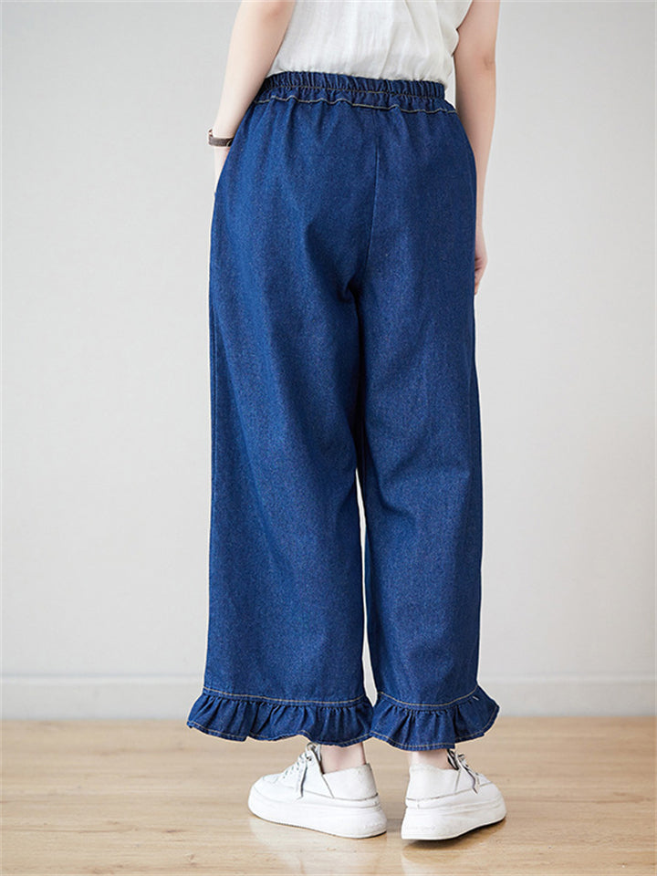 Women's Ruffled Leg Cuff Blue Straight Leg Jeans