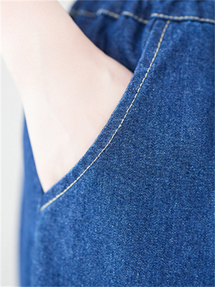 Women's Casual Solid Color Pockets Harem Denim Jeans