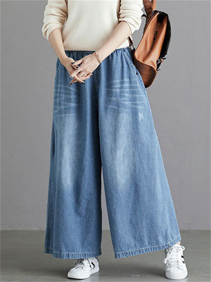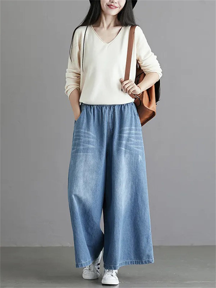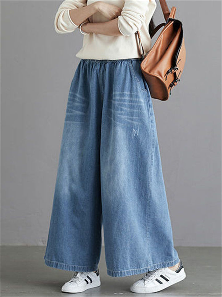 Loose Elastic Waist Wide Leg Jeans for Women