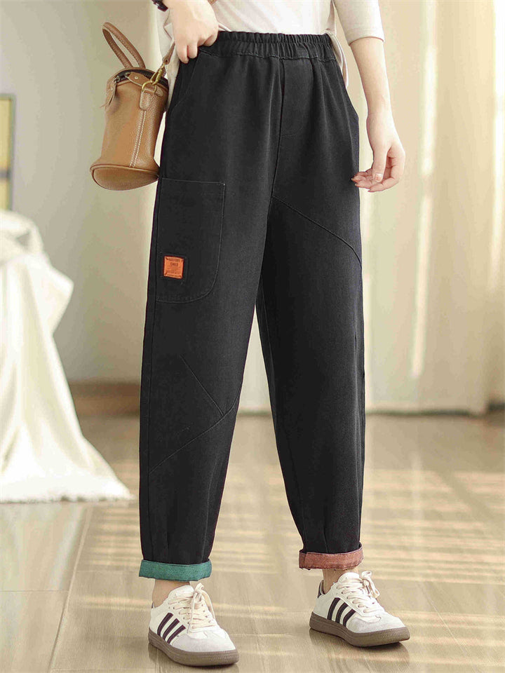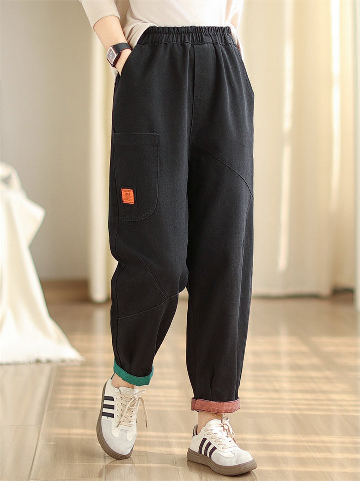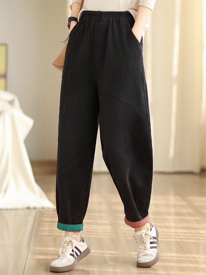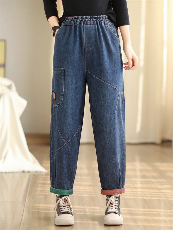 Women's Casual Solid Color Pockets Harem Denim Jeans