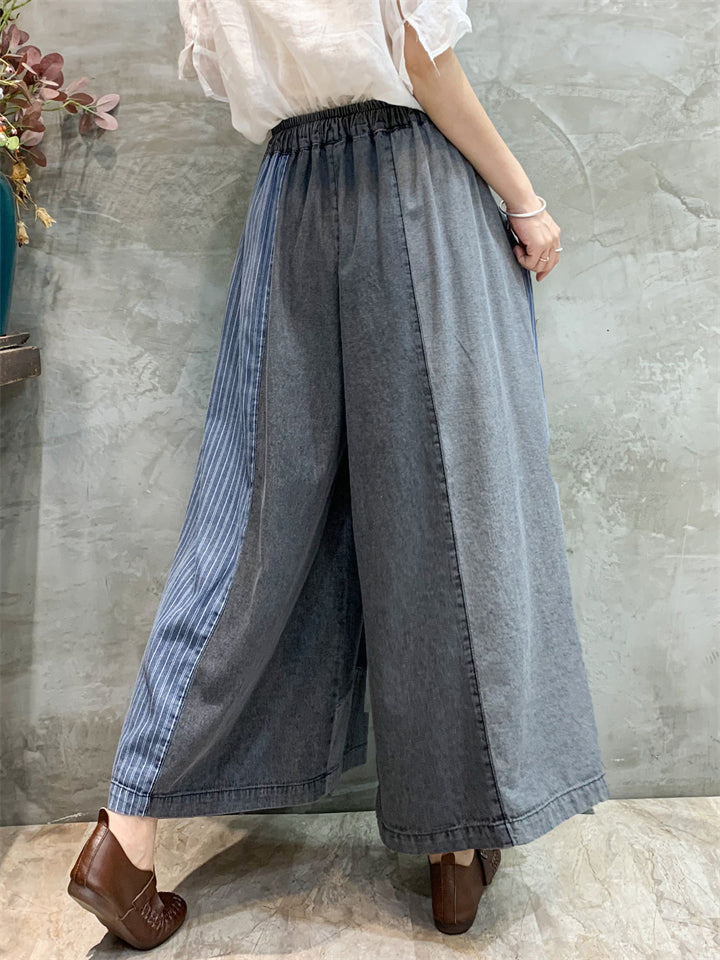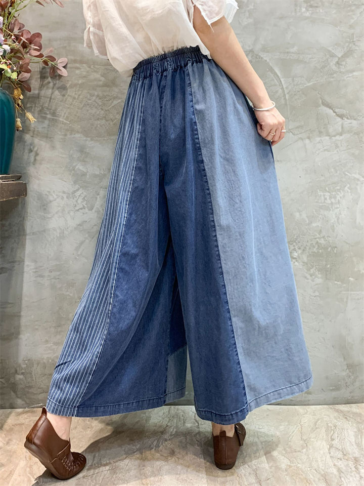 Summer Women's Patchwork Wide Leg Cropped Jeans