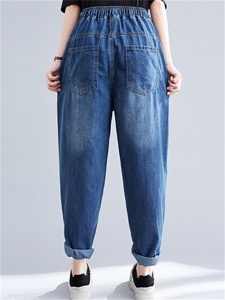 Women's Casual Solid Color Pockets Harem Denim Jeans