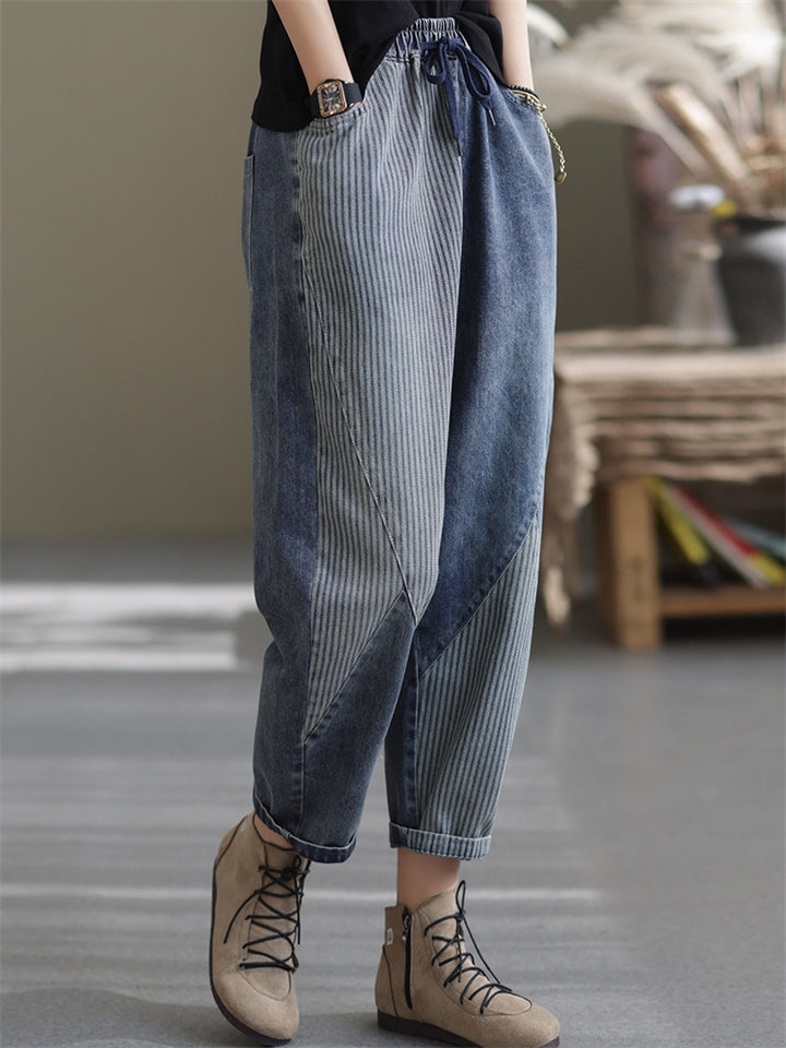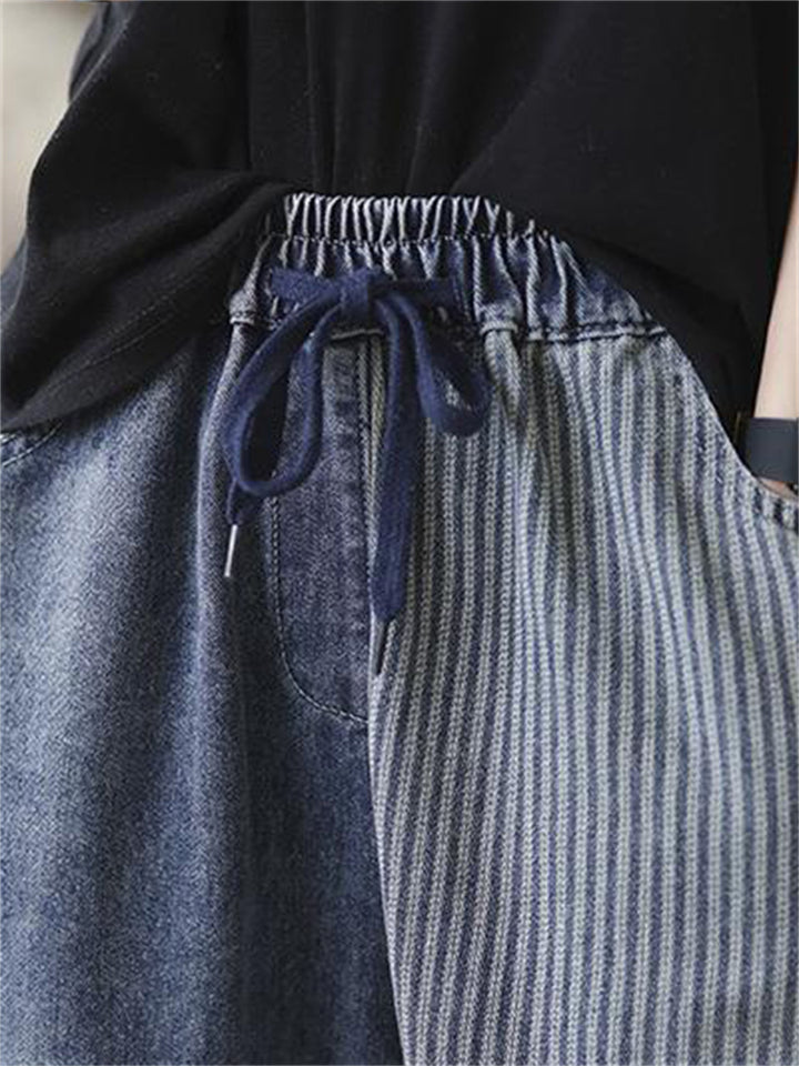 Summer Women's Patchwork Wide Leg Cropped Jeans