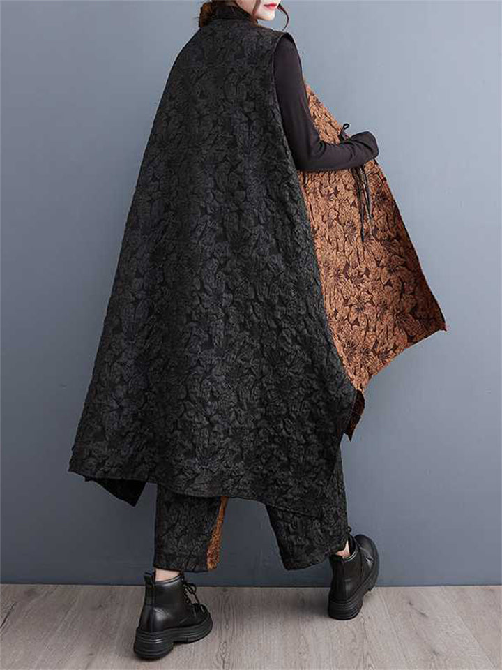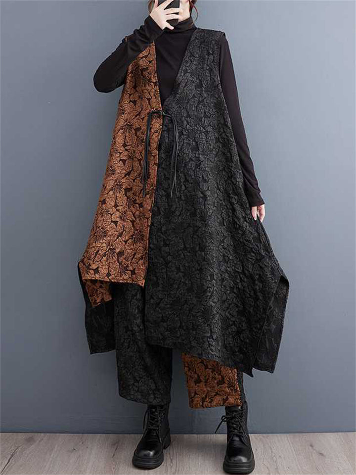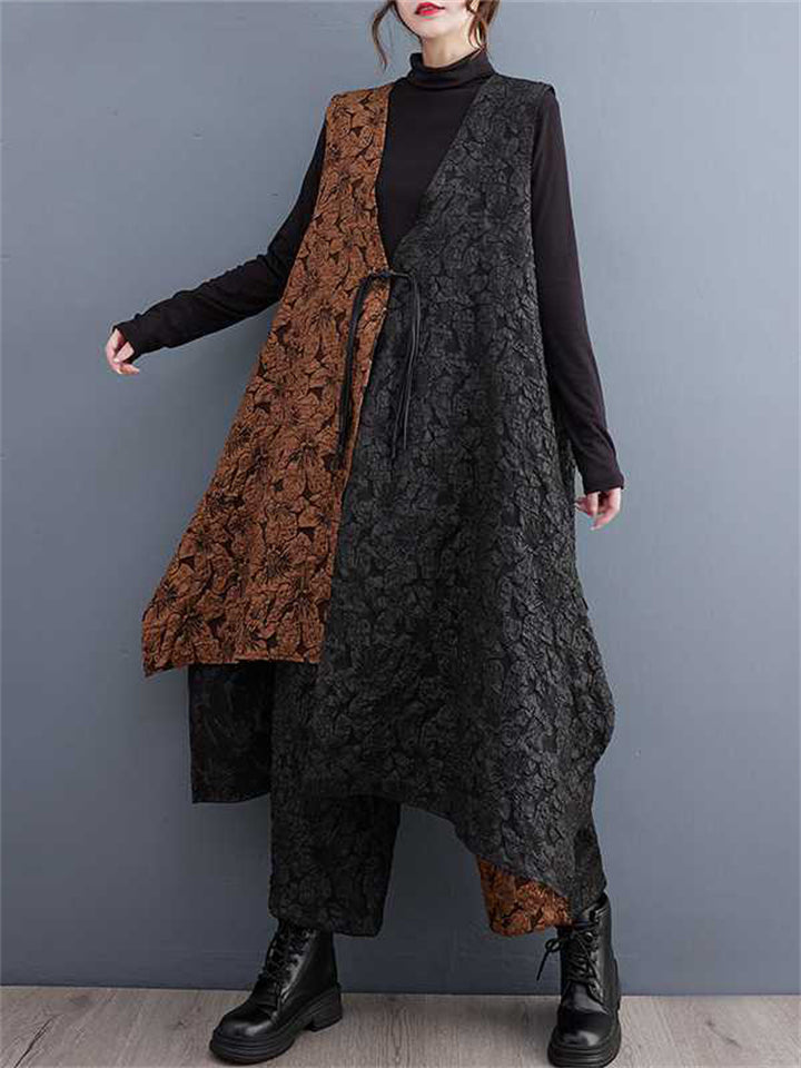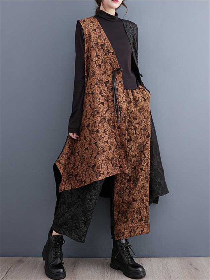 Chic Jacquard Irregular Hem Vest & Straight-Leg Pants