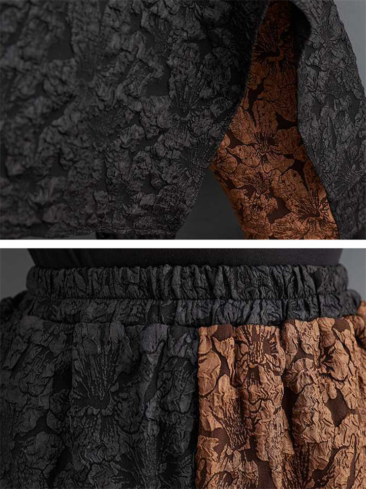 Women's 2Pcs Contrast Color Print Lapel Shirt & Pleated Skirt Set