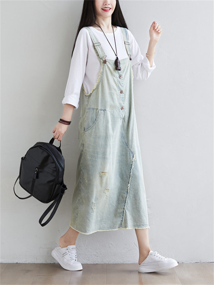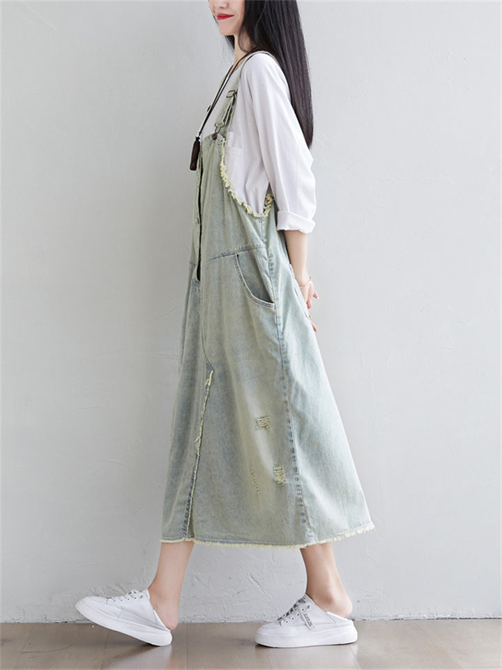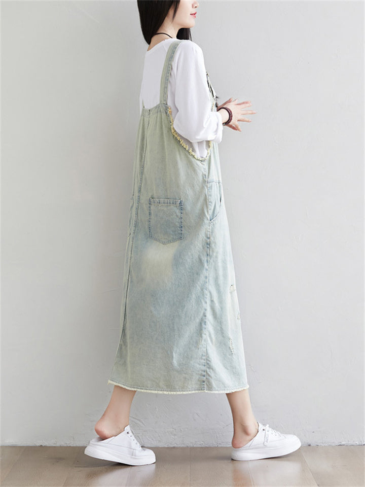 Women's Contrast Color Pockets Loose Overall Denim Jumpsuits