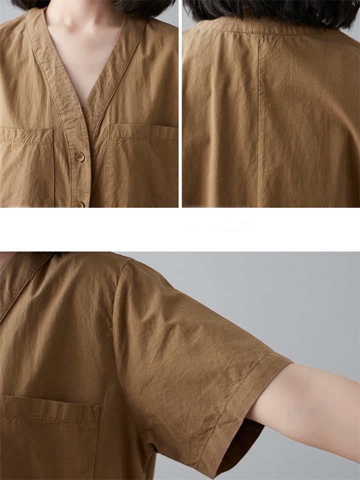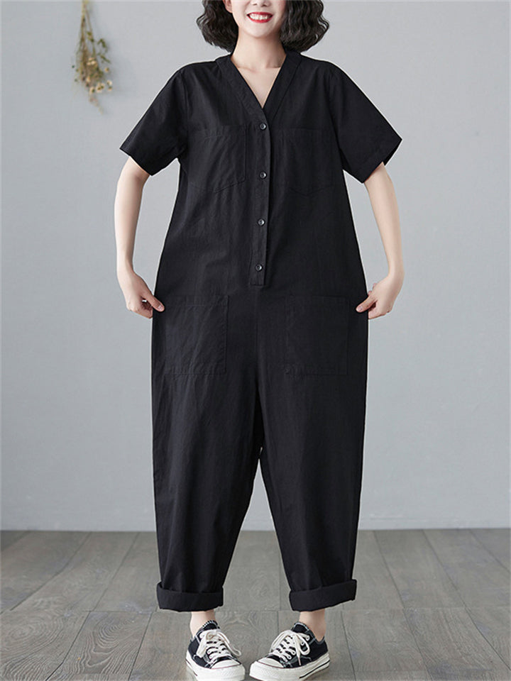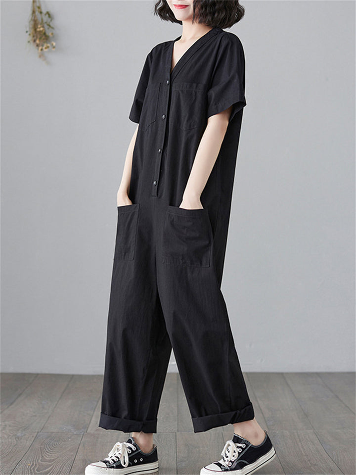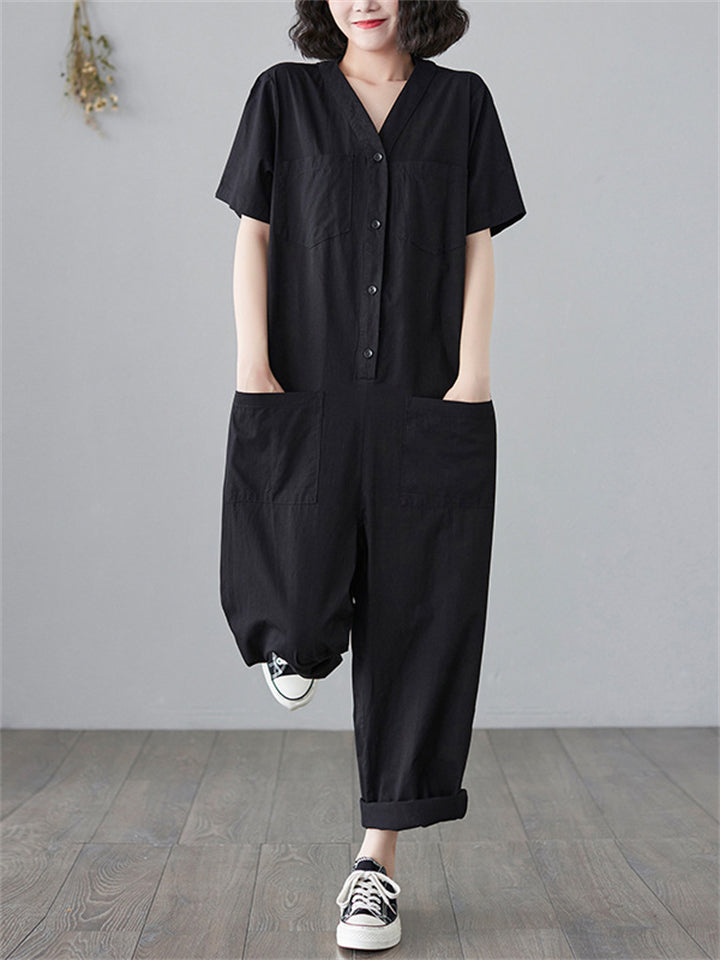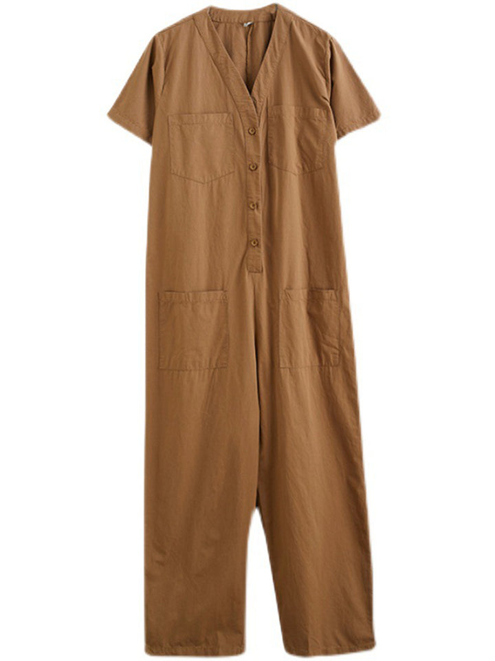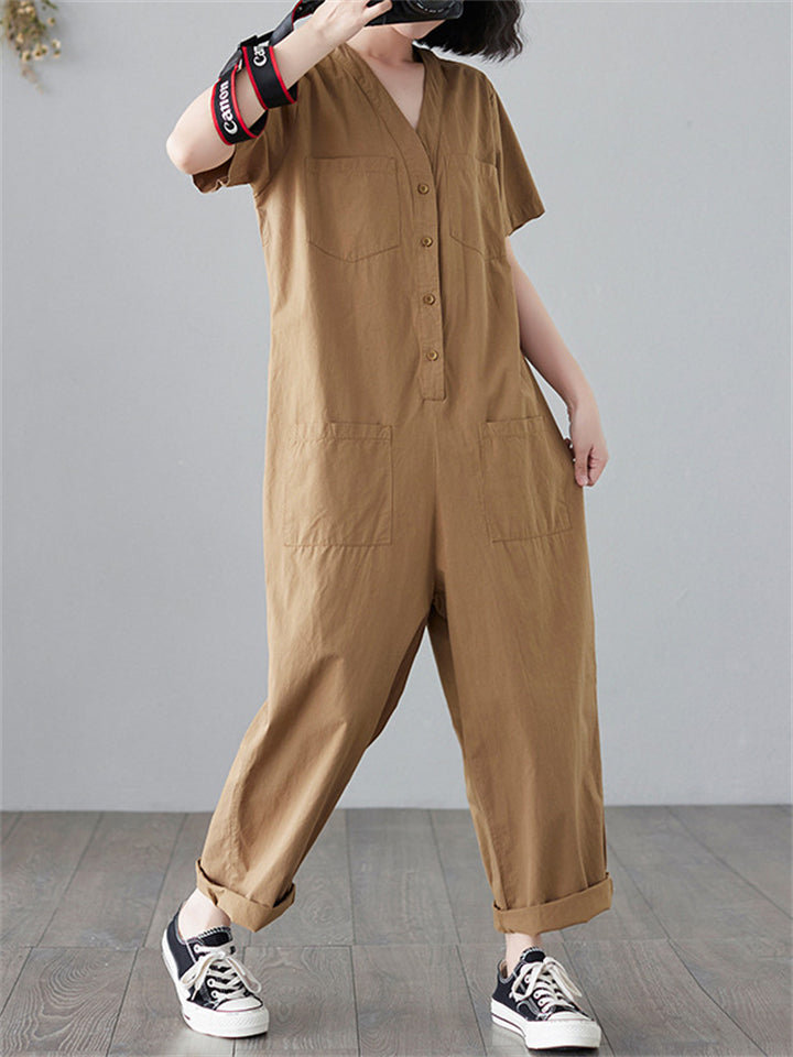 Female Leisure V Neck Multi-Pocket Hard-Wearing Overalls