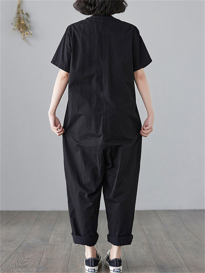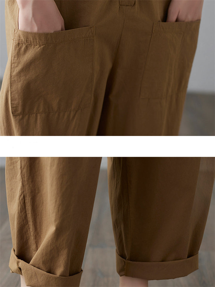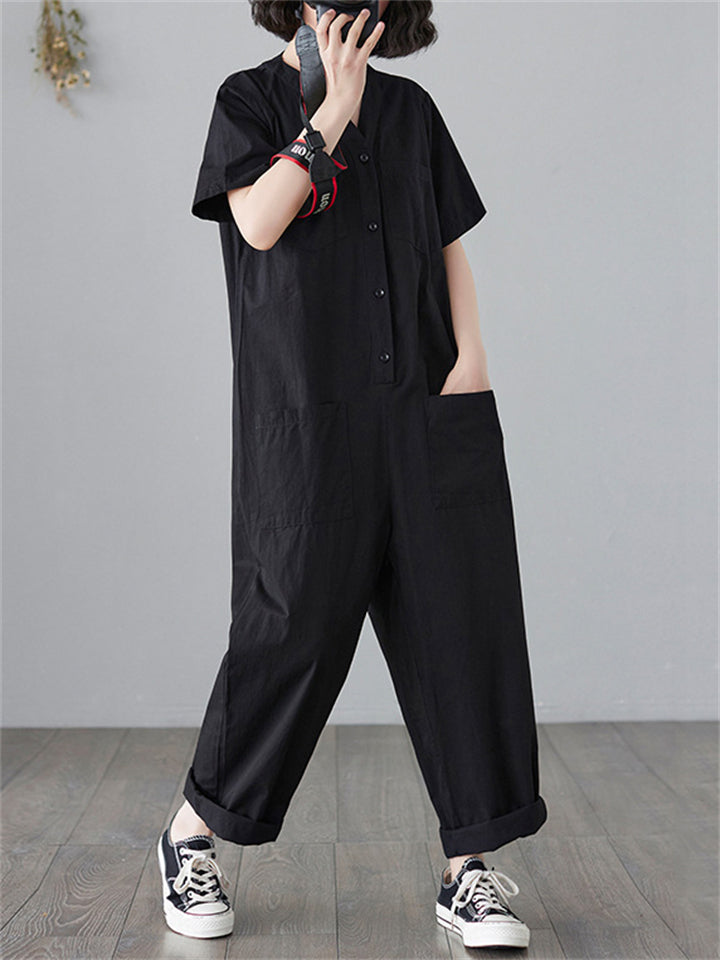 Summer Female Solid Color Wide Leg Drape Overall Jumpsuits