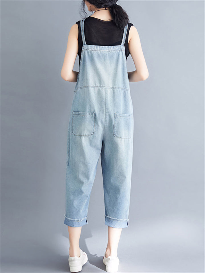 Female Simple Light Blue Summer Korean Style Jumpsuits