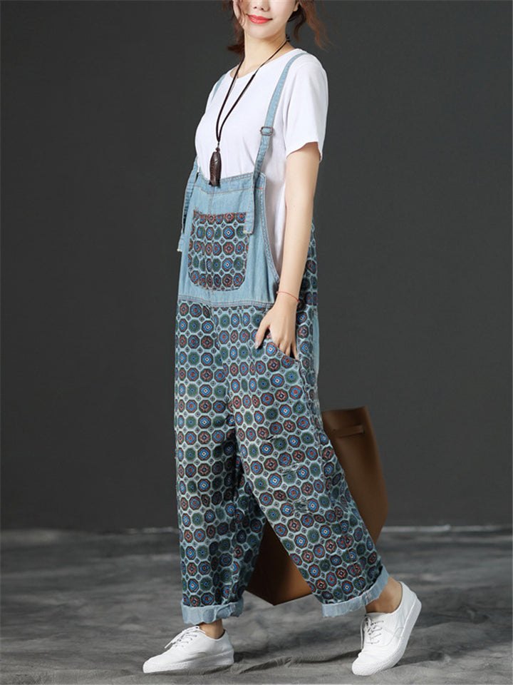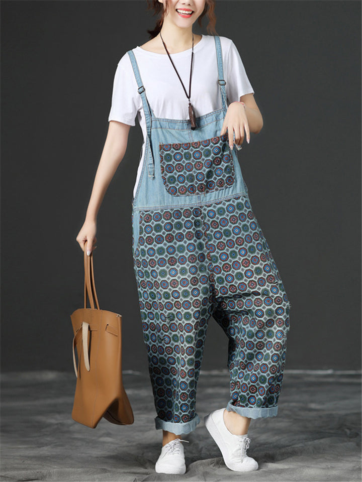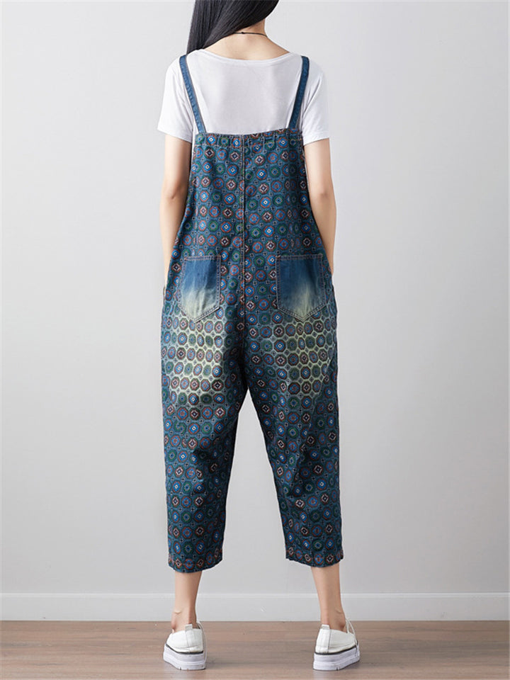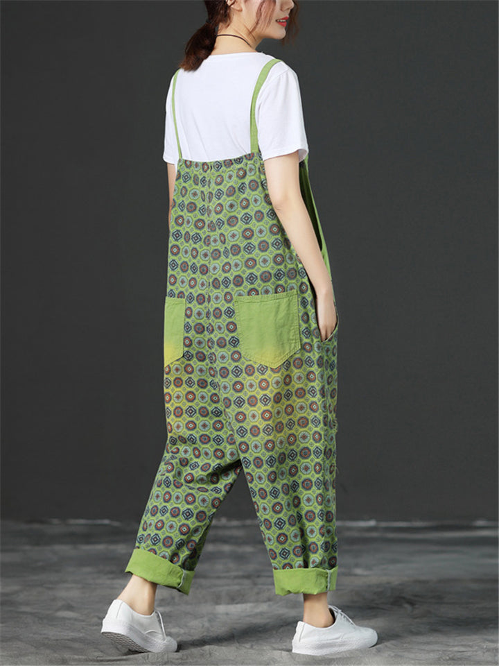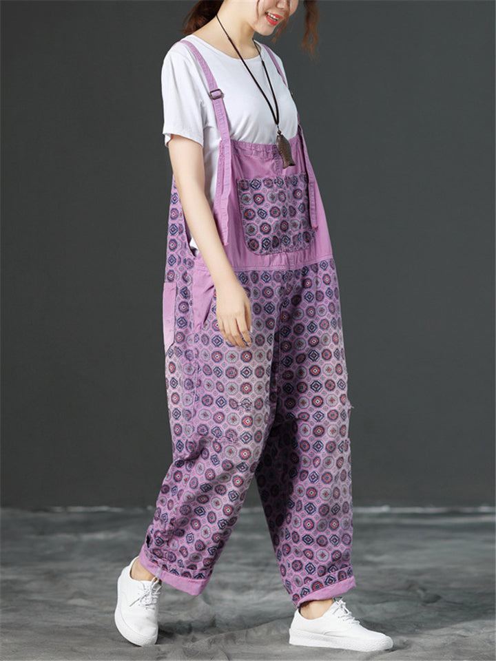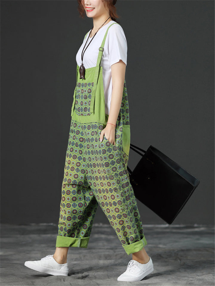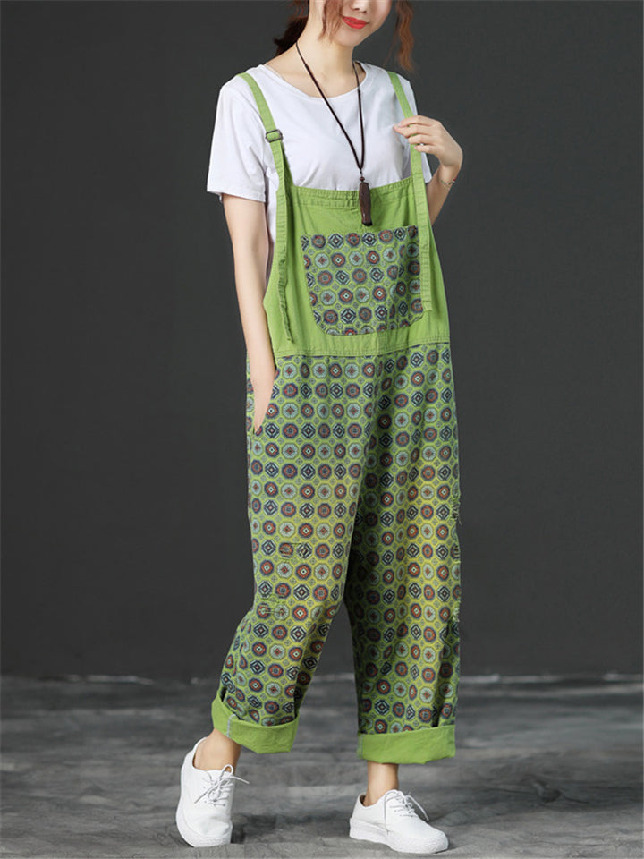 Loose Adjustable Printed Jumpsuits With Pocket