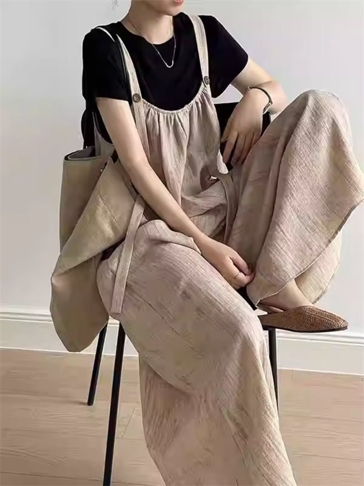 Summer Female Solid Color Wide Leg Drape Overall Jumpsuits