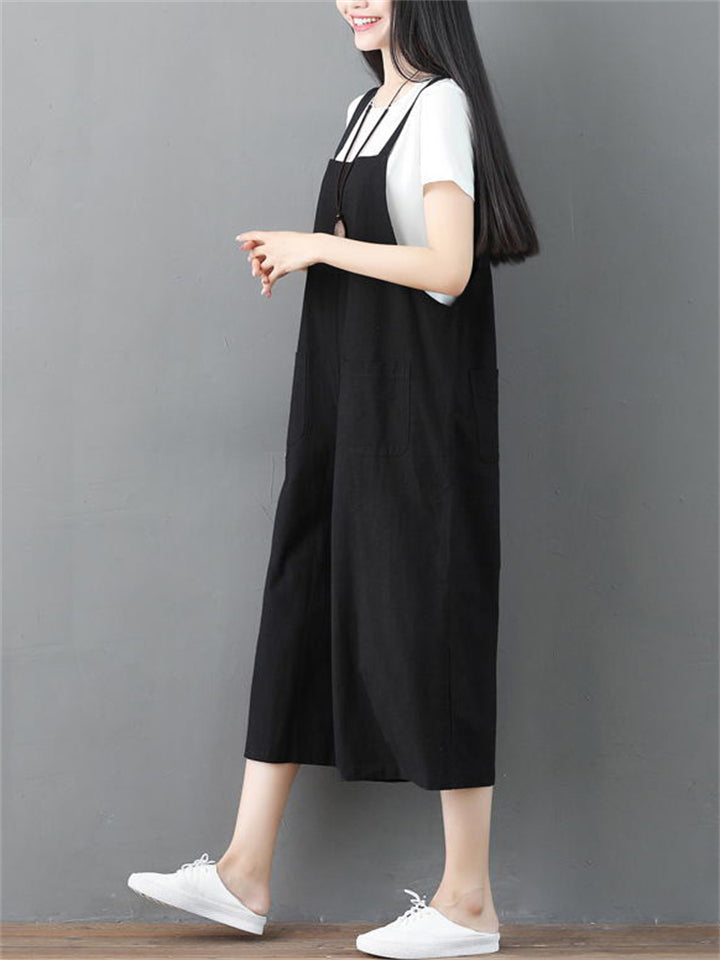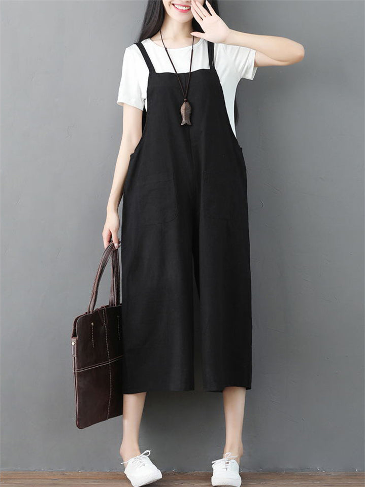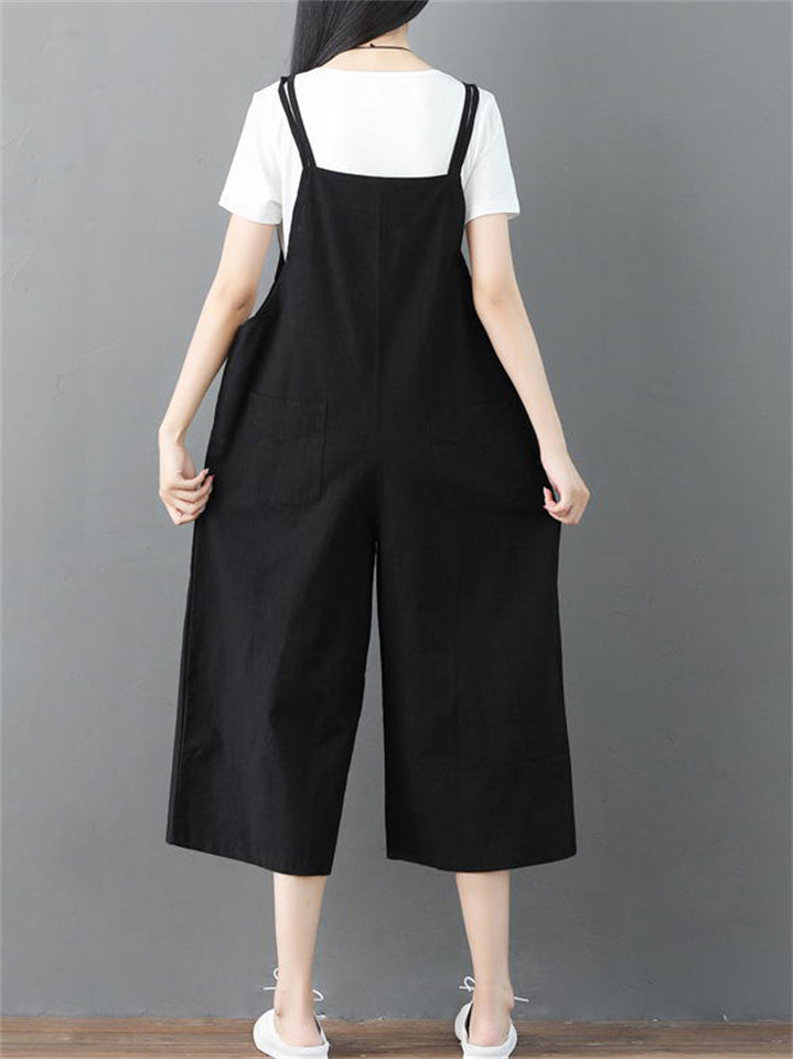 Summer Female Solid Color Wide Leg Overall Cropped Jumpsuits