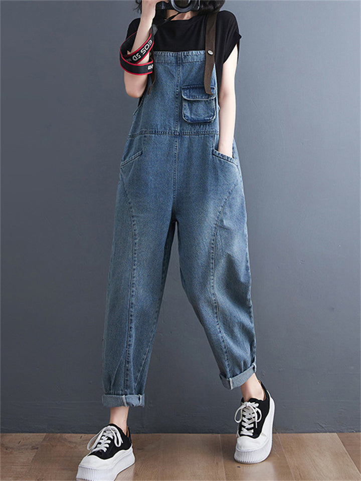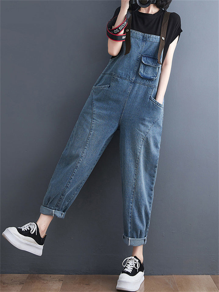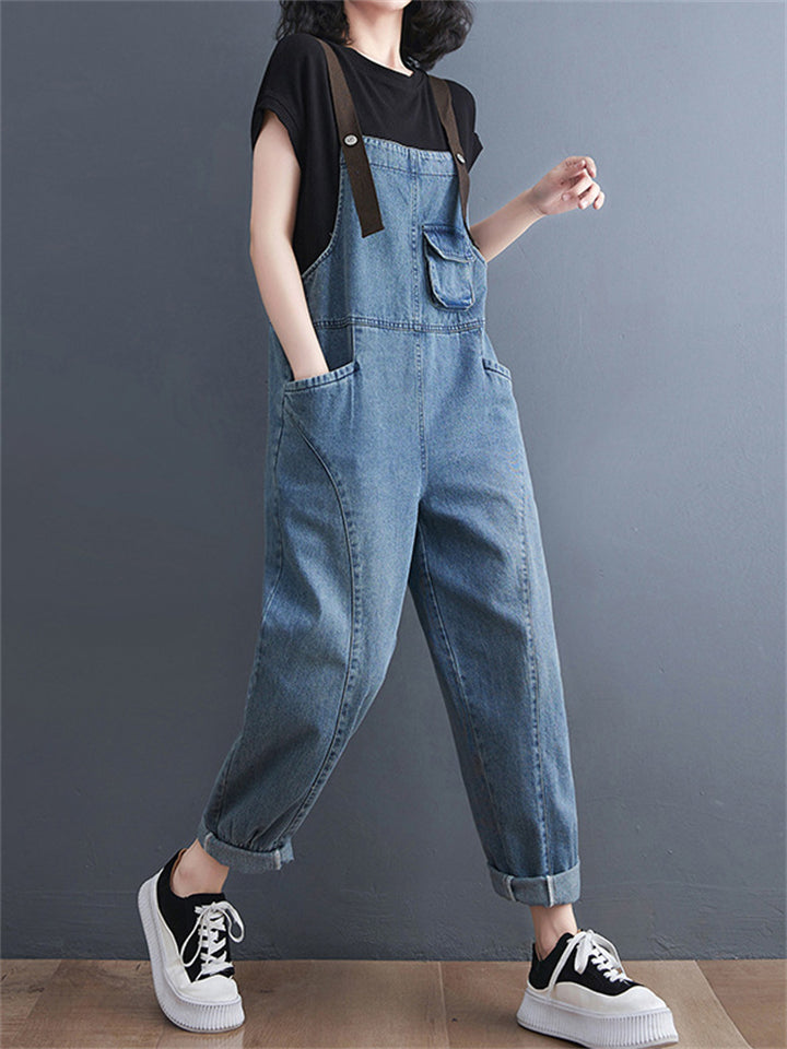 Vintage Female Loose Sleeveless Denim Jumpsuits In Stock