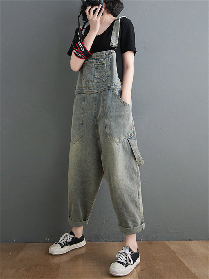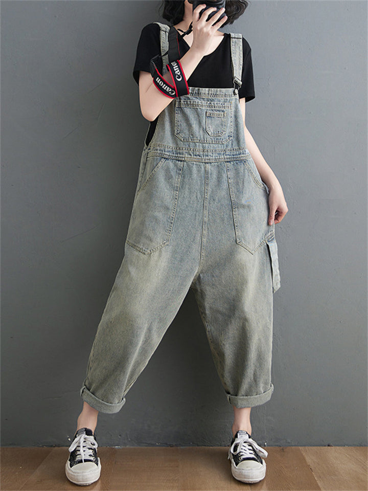 Washed New Spring Relaxed Retro Jumpsuits For Lady