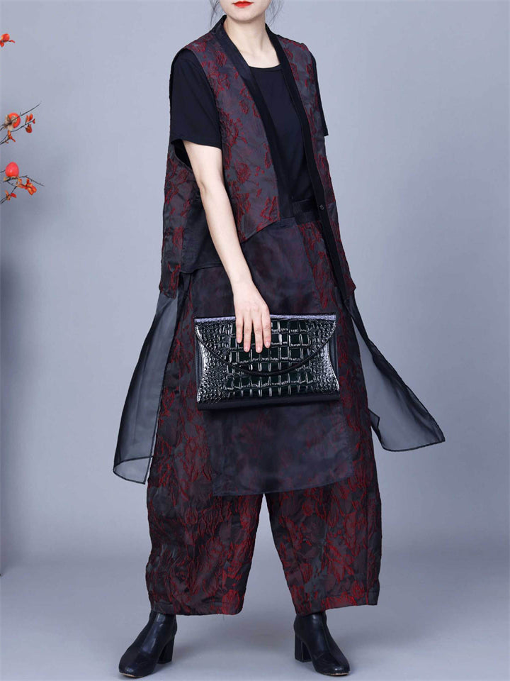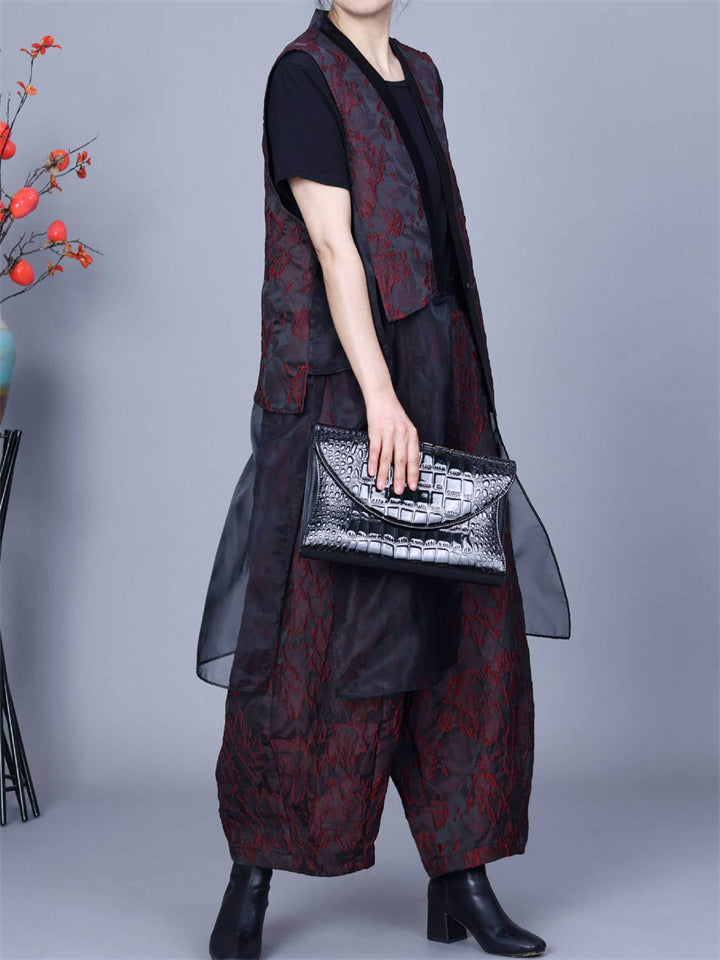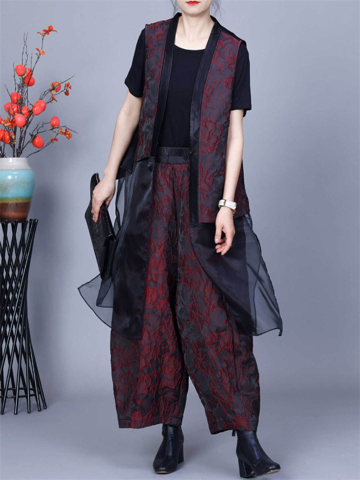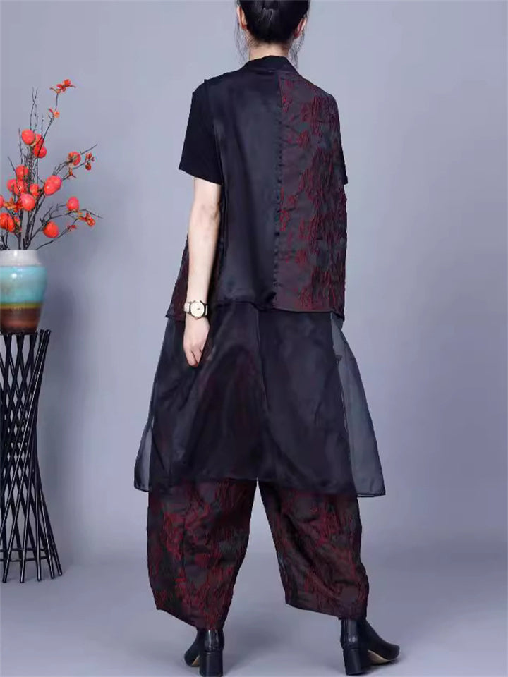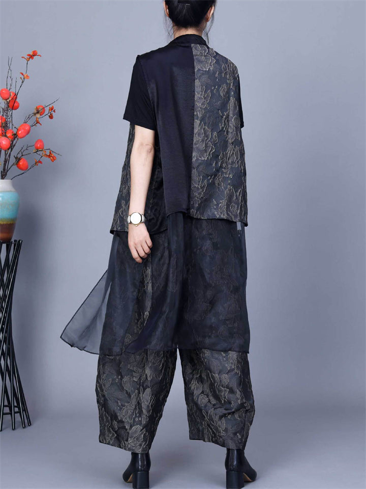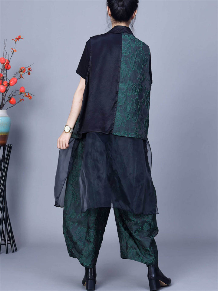 Women's Mesh Patchwork Sleeveless Top Elastic Waist Pants Set