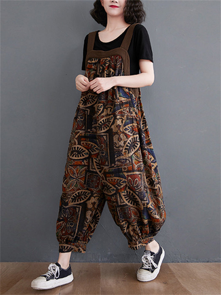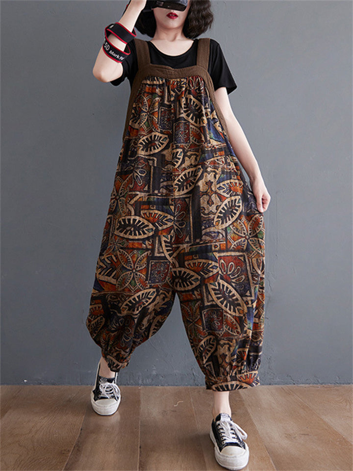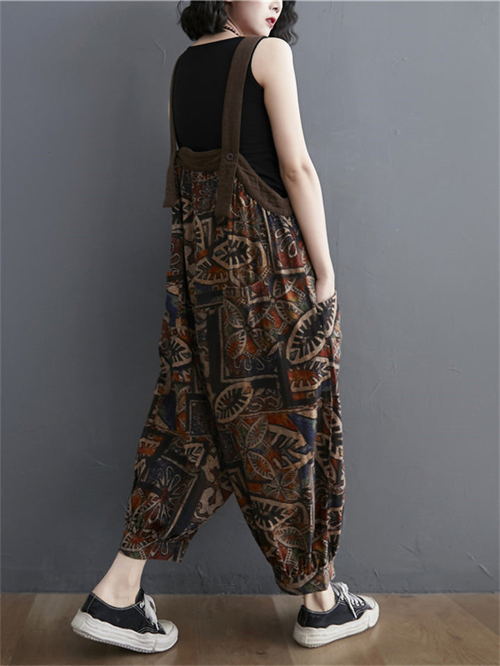 Women's Vintage Printed Spring Summer Linen Bloomers Jumpsuits