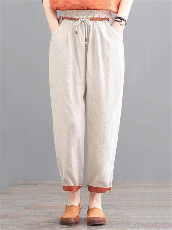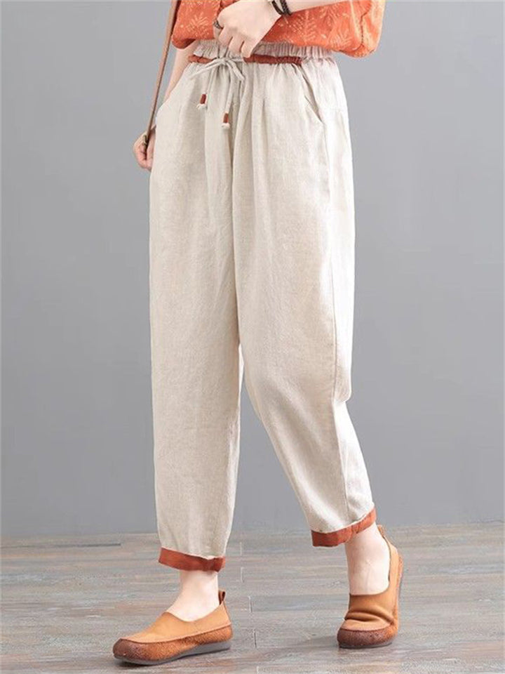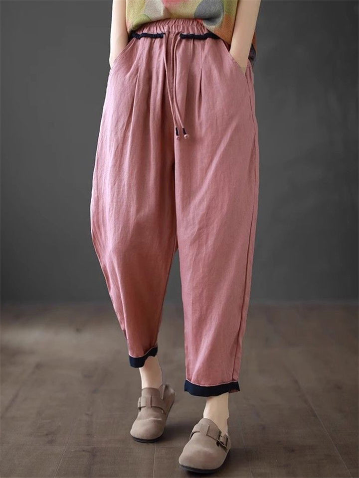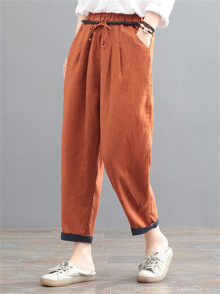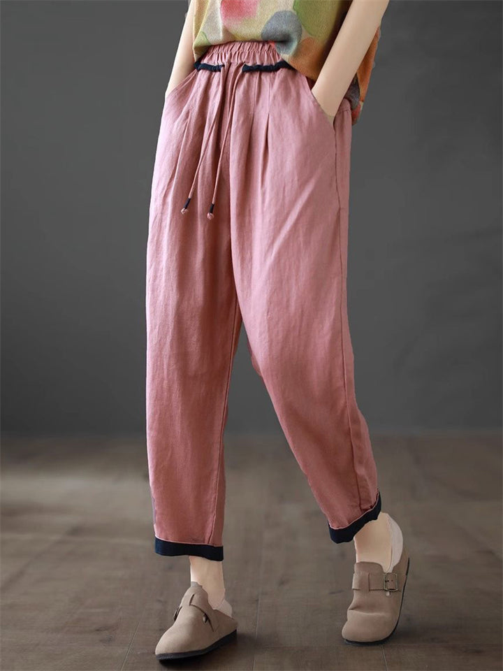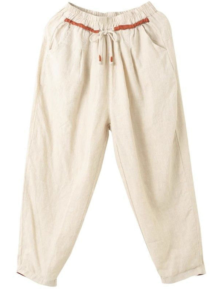 Comfortable Cotton Linen Drawstring Simple Tapered Pants for Women