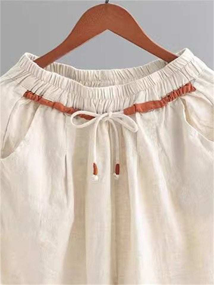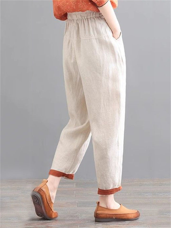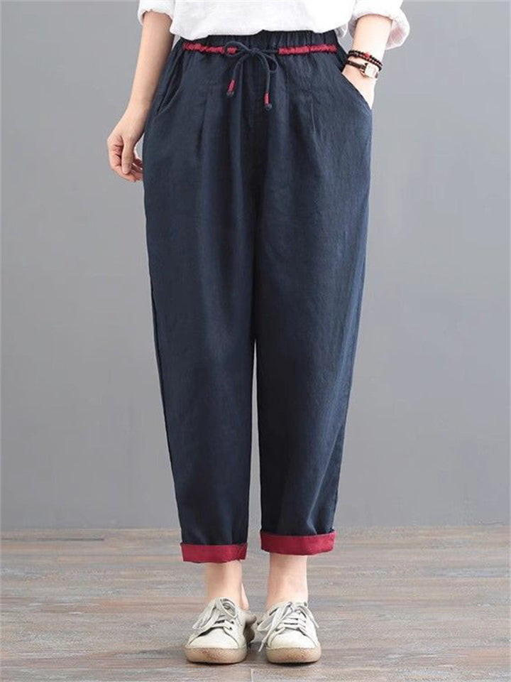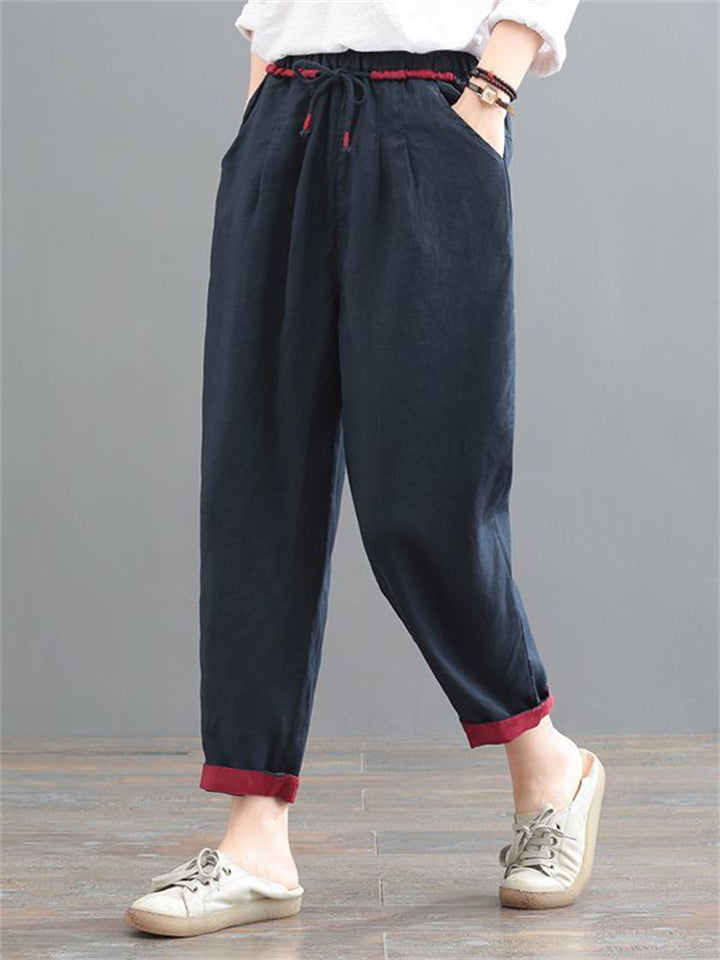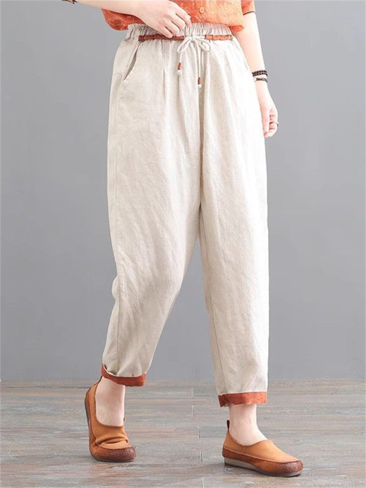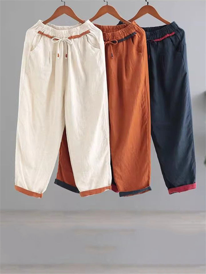 Comfortable Cotton Linen Drawstring Simple Tapered Pants for Women