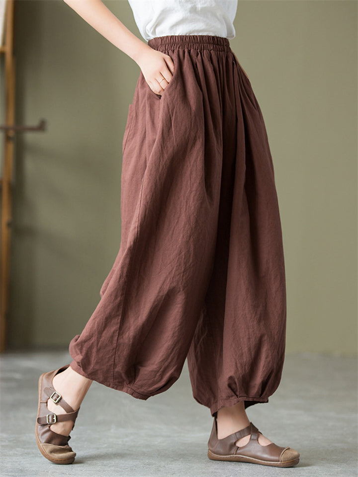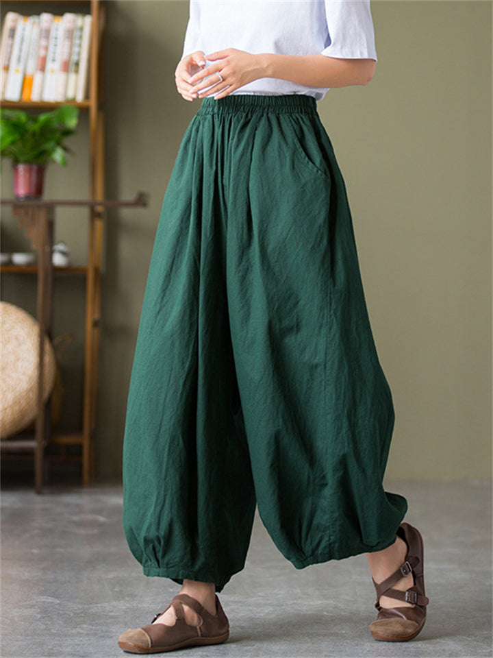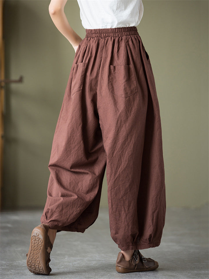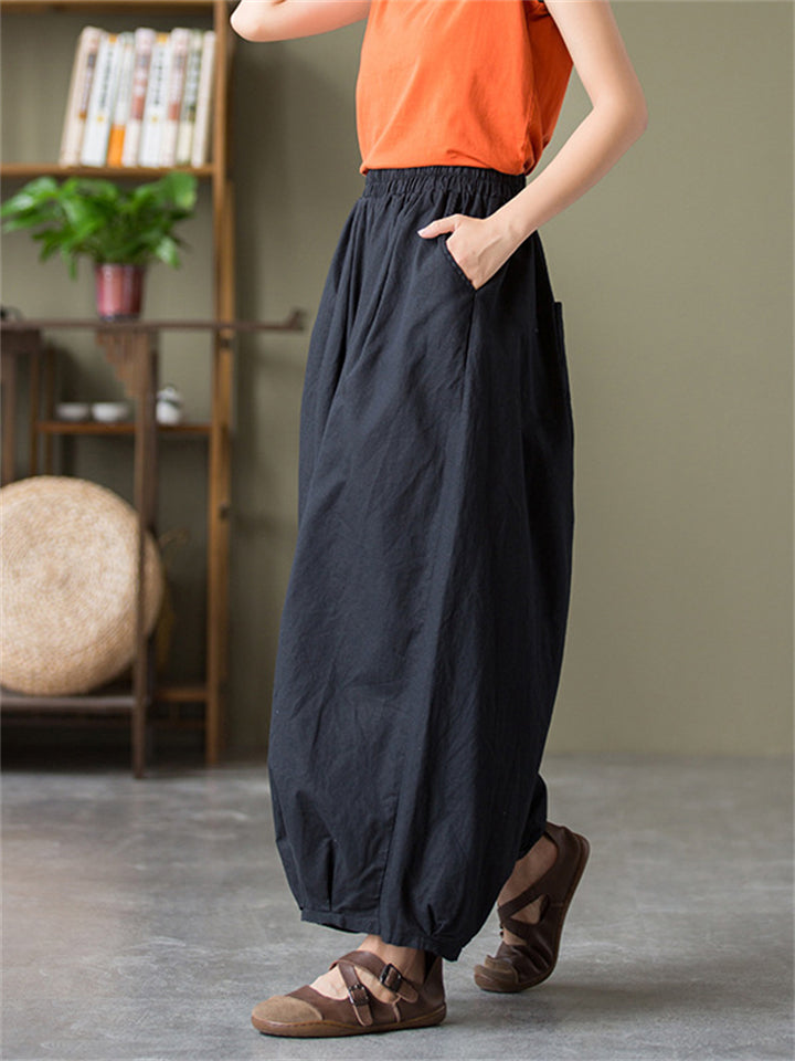 Comfortable Cotton Linen Elastic Waist Lantern Pants for Female