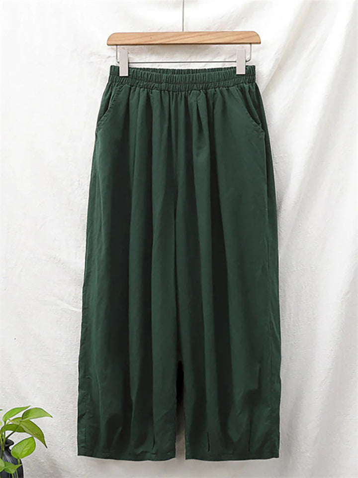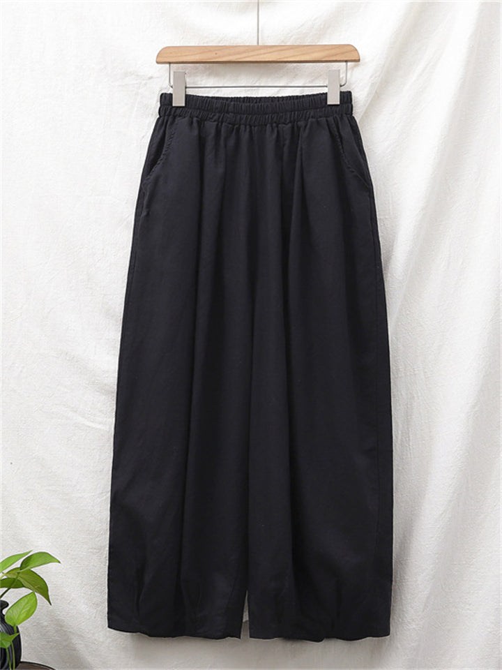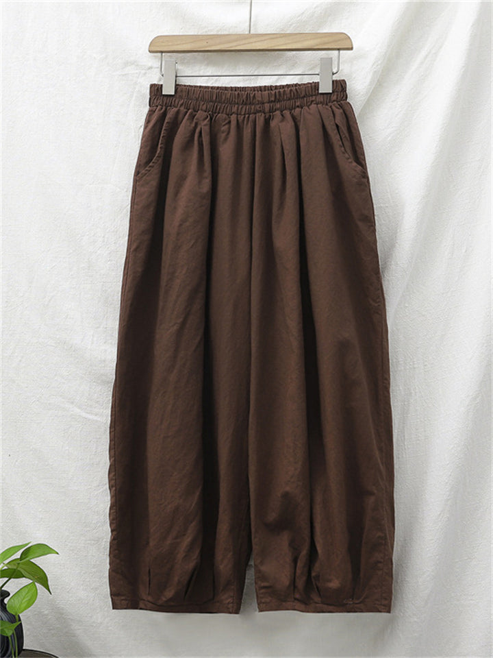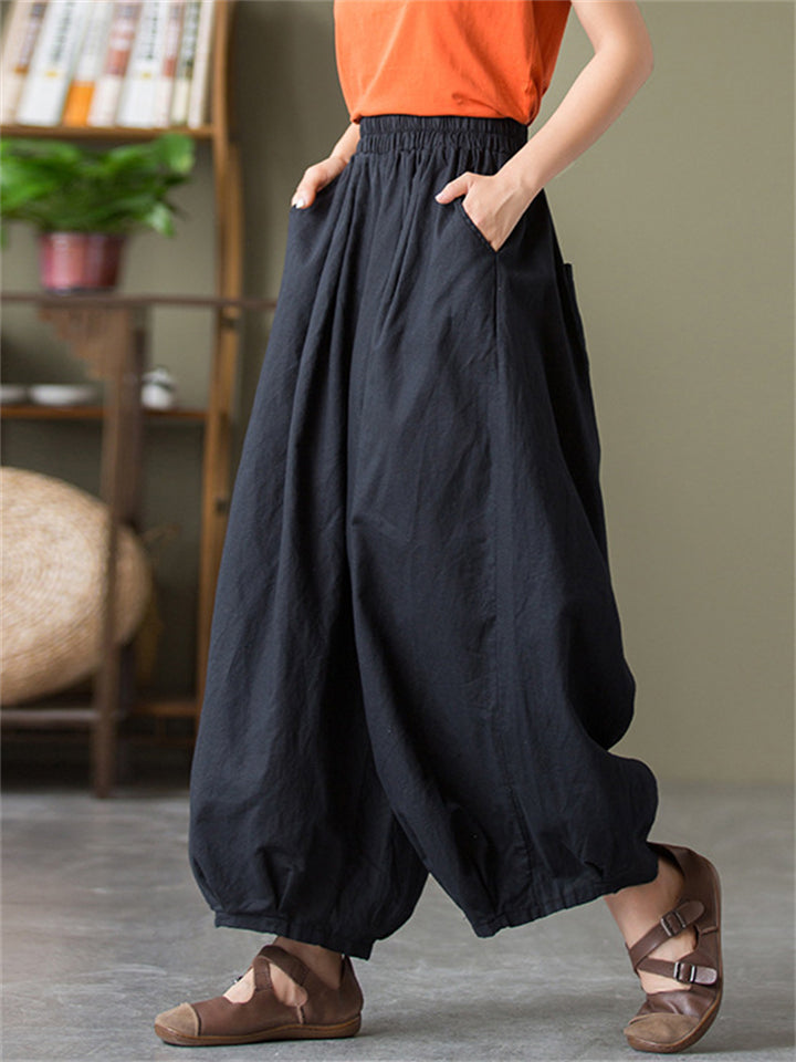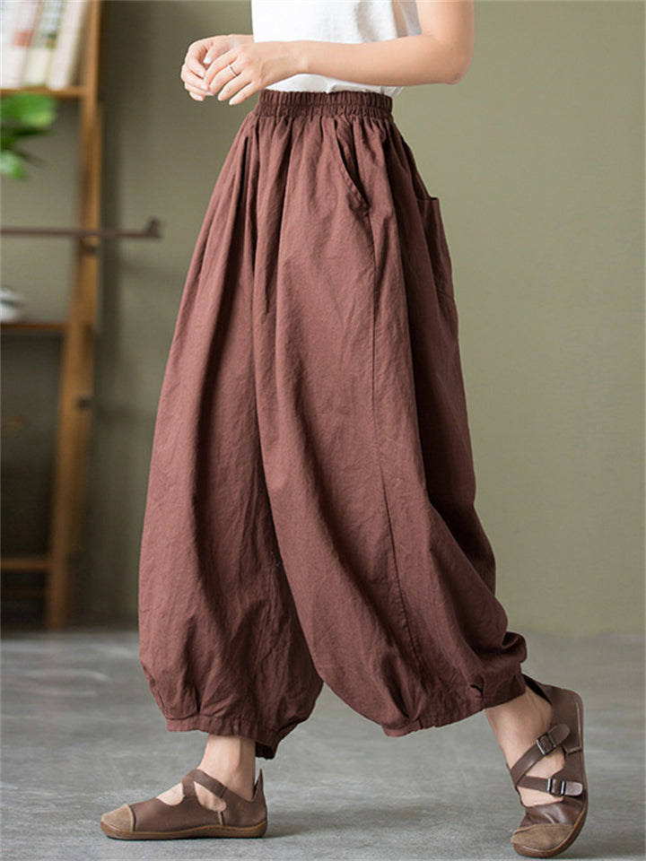 Comfortable Cotton Linen Elastic Waist Lantern Pants for Female