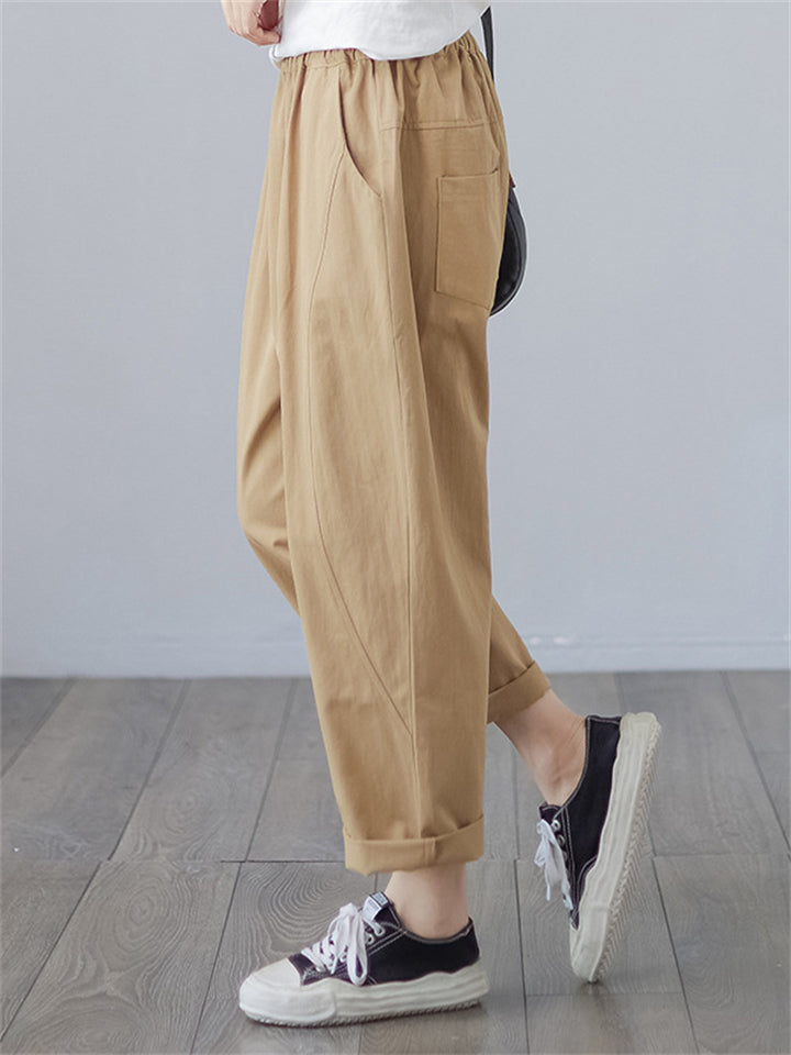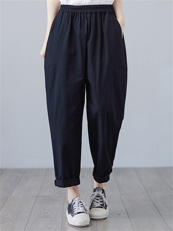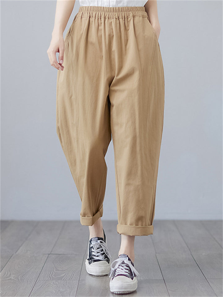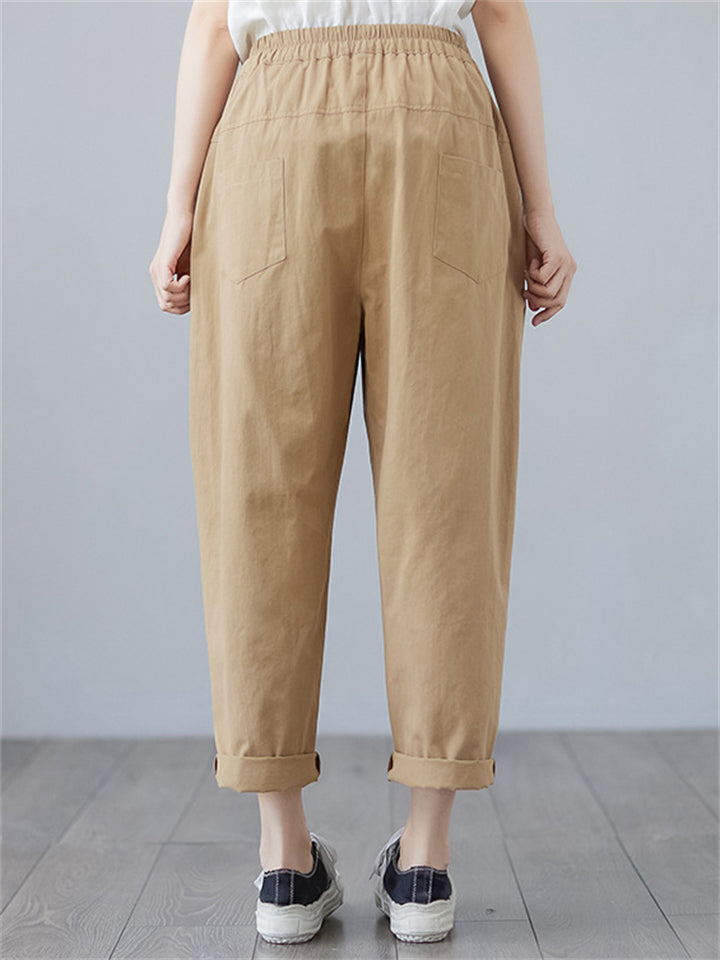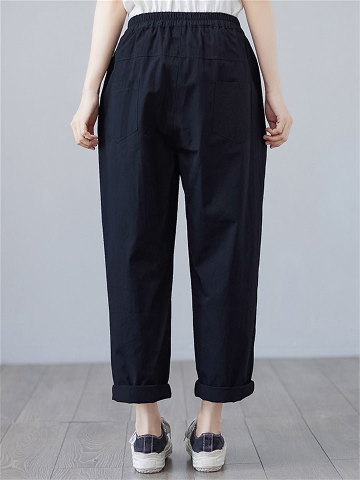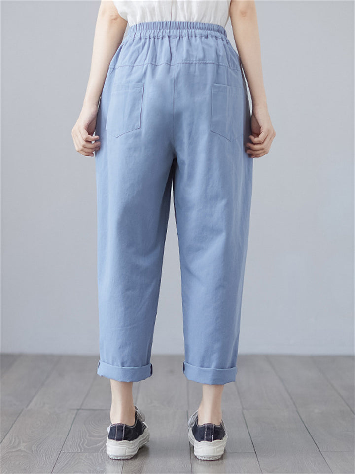 Women's Summer Cool Solid Color Elastic Waist Drawstring Pants