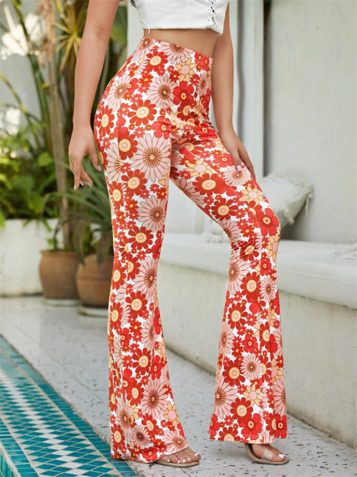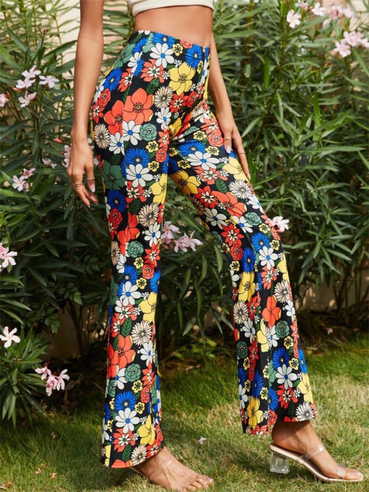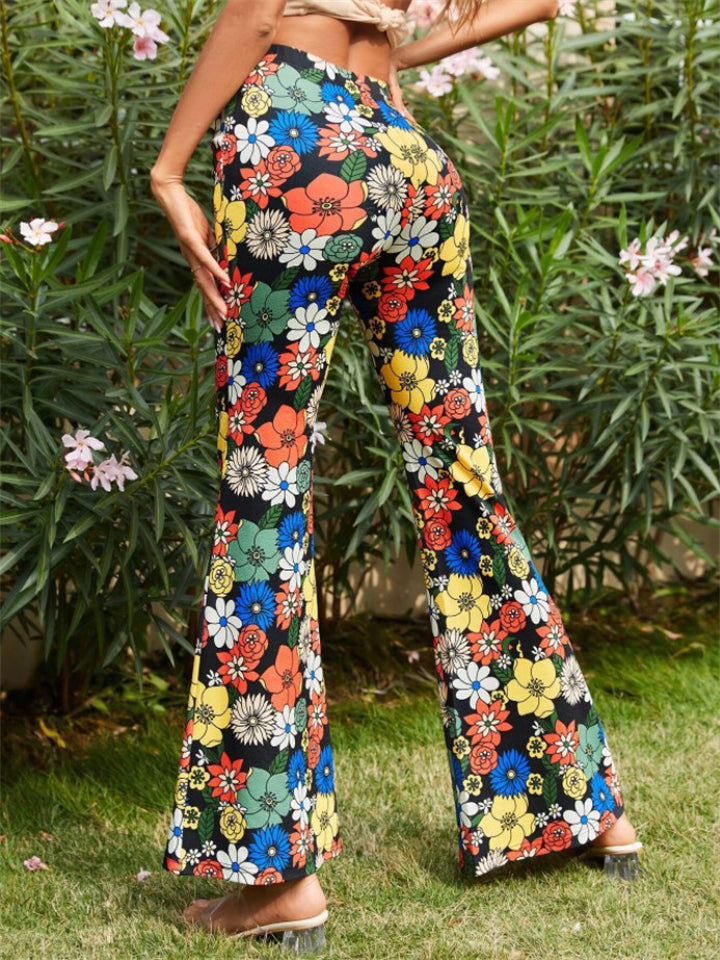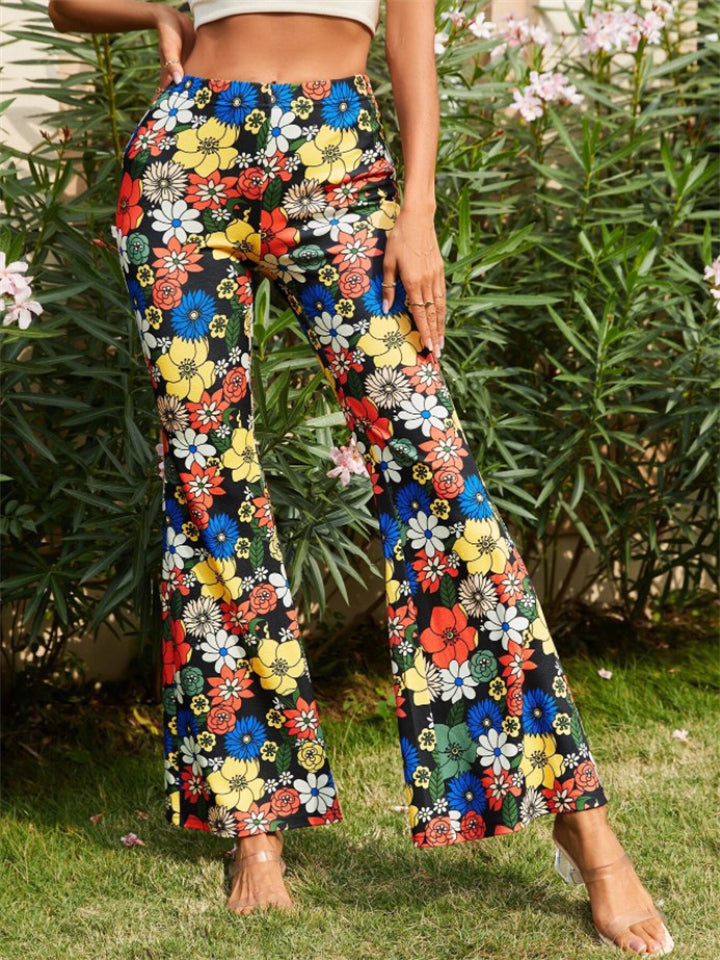 Women's Retro Ethnic Style Printed Loose High Waist Wide Leg Pants