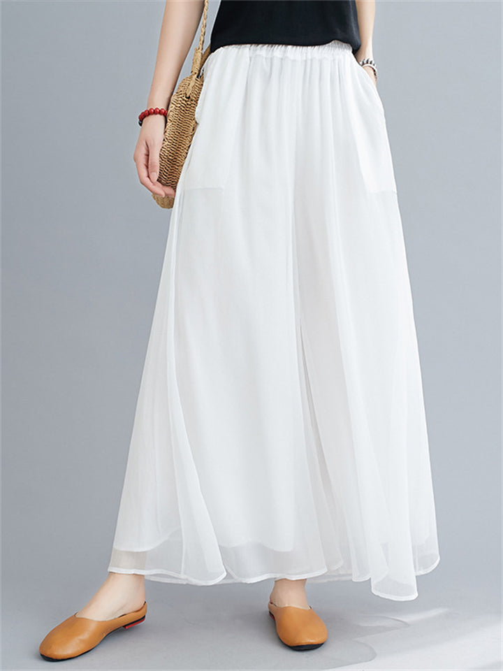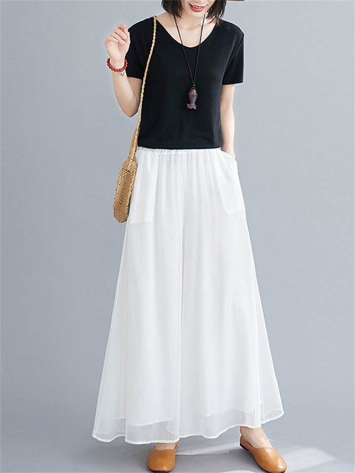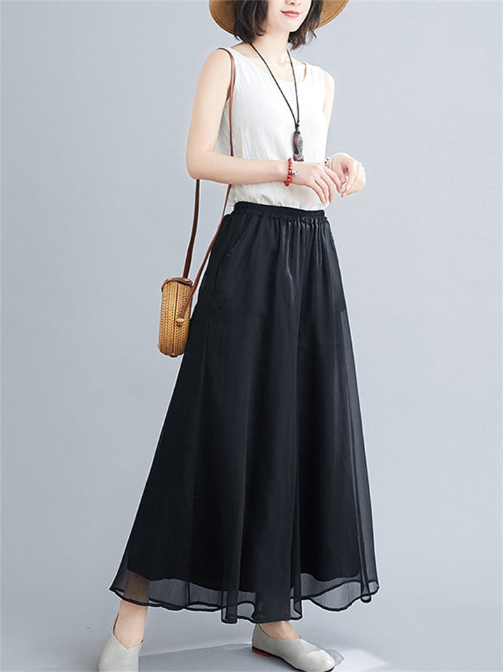 Women's Ethnic Style Embroidery Solid Color Elastic Waist Wide Leg Pants