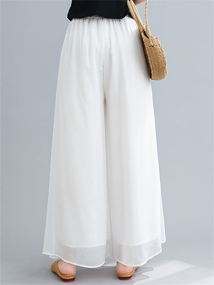 Women's Simple Comfy Ethnic Style Embroidered Wide Leg Pants