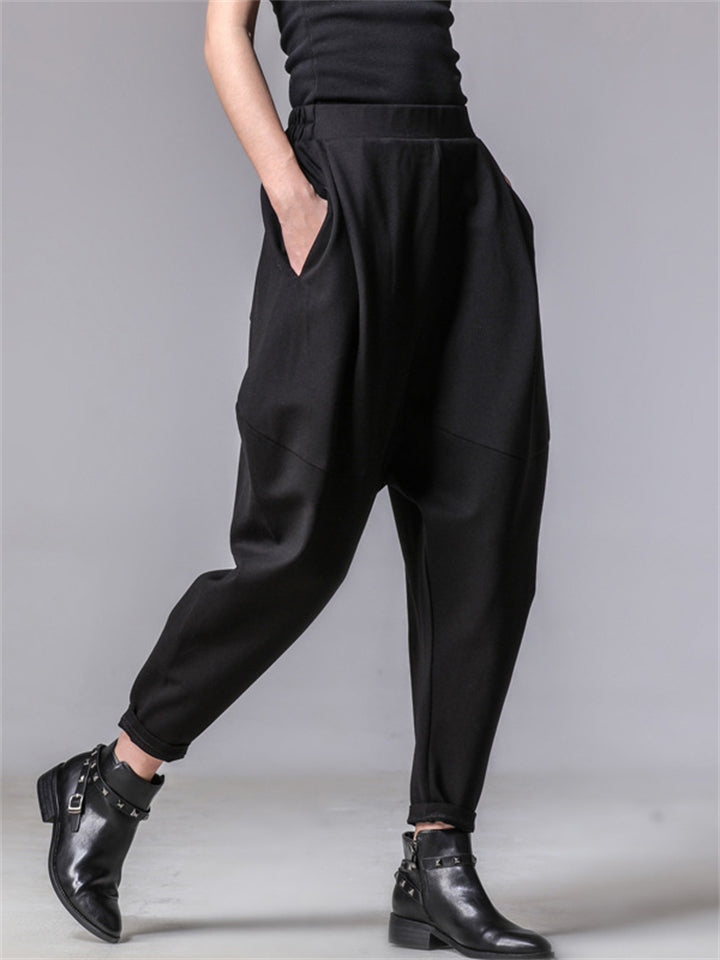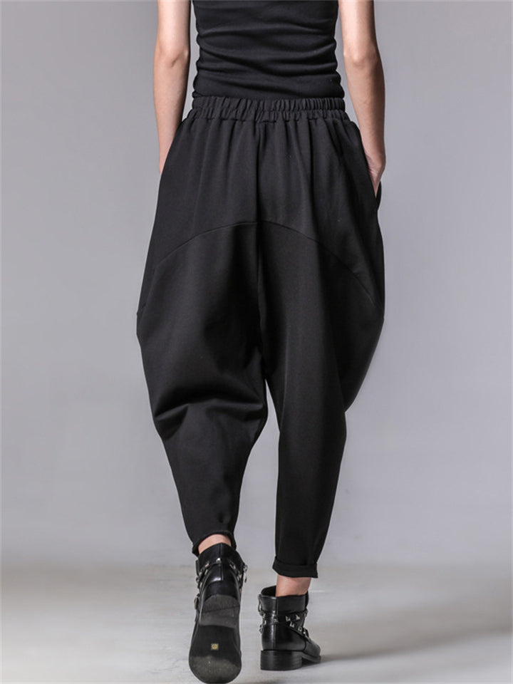 Women's Ethnic Style Embroidery Solid Color Elastic Waist Wide Leg Pants