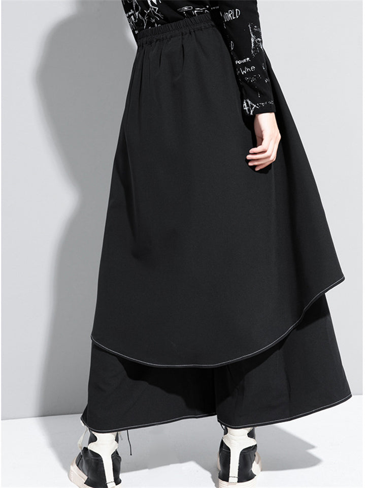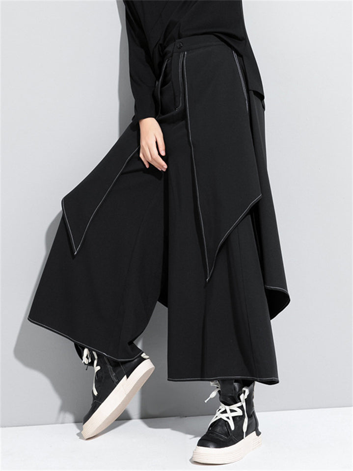 Fashion Women's Street Casual Black Patchwork Wide Leg Flared Pants