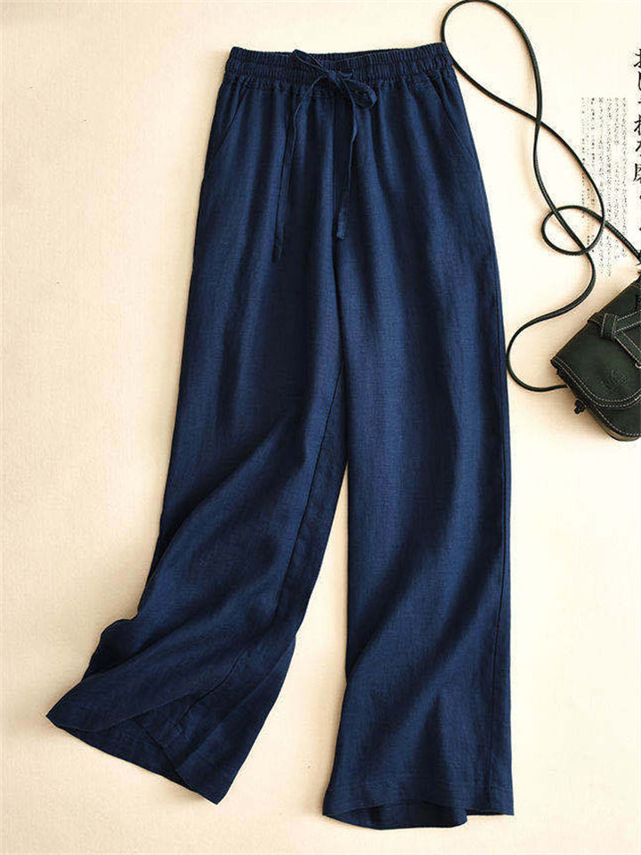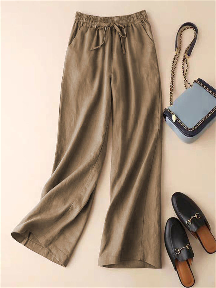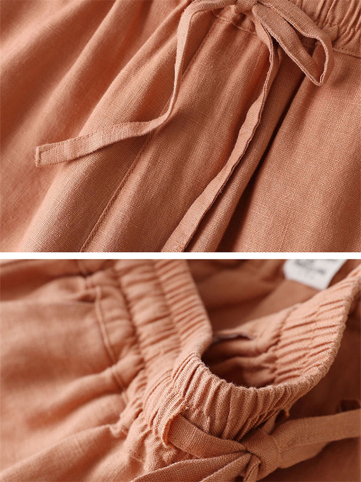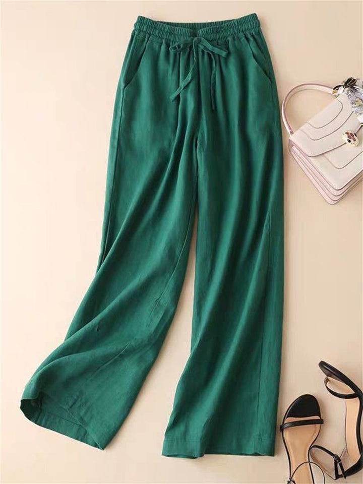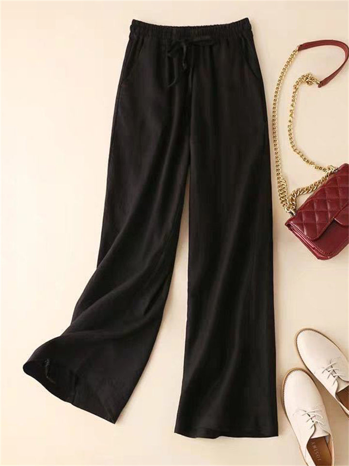 Women's Summer Cool Solid Color Elastic Waist Drawstring Pants