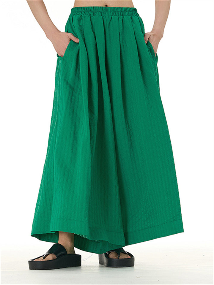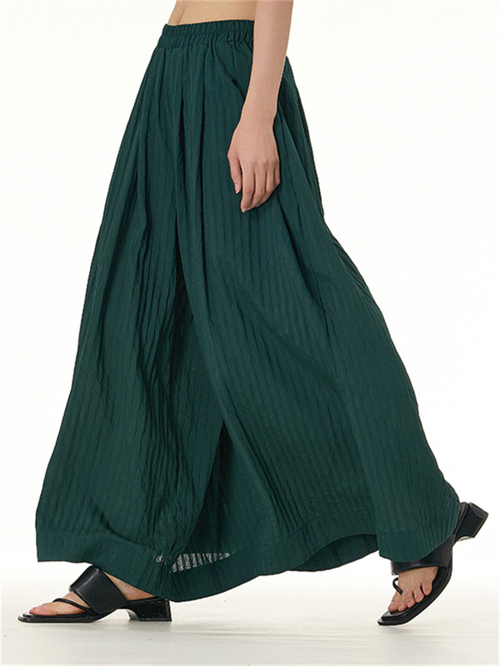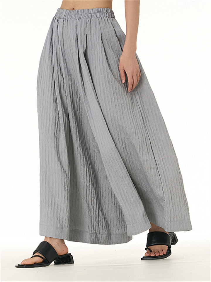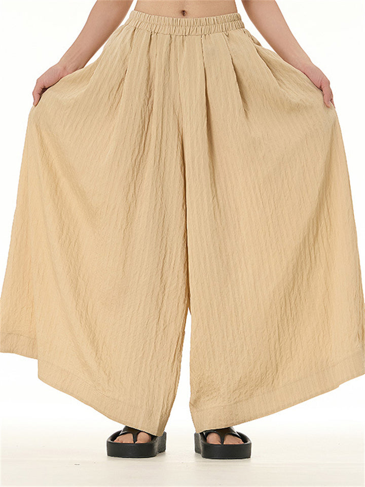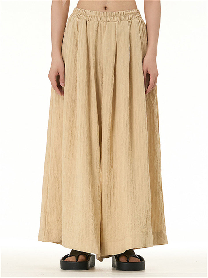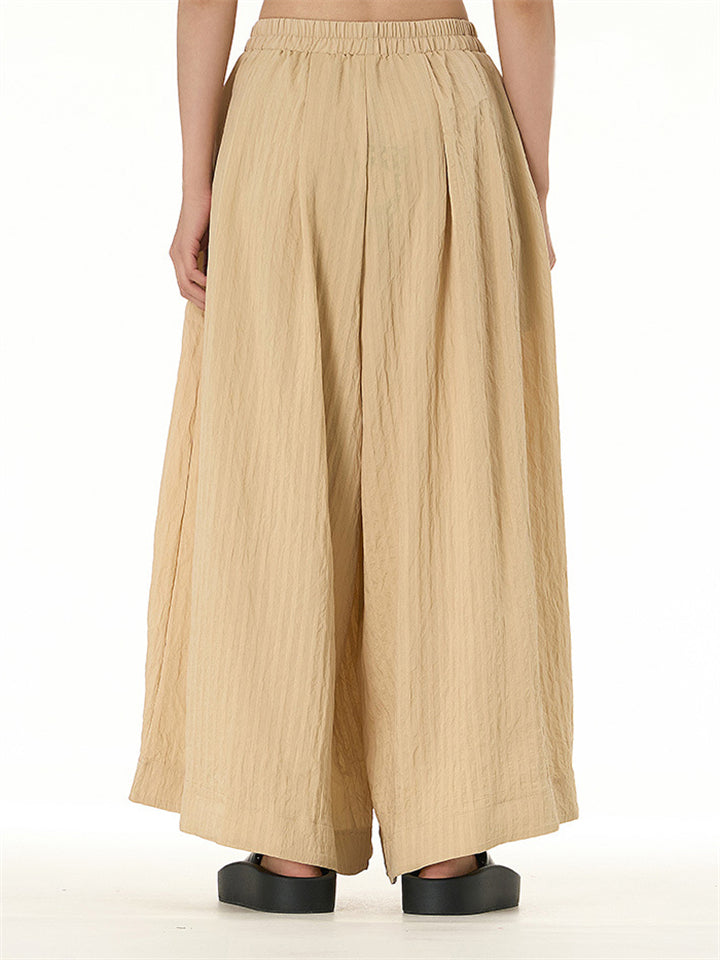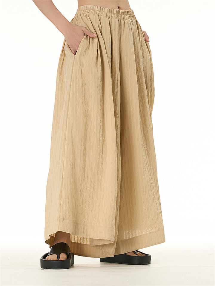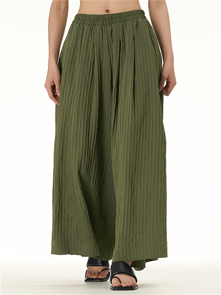 Female Loose-fitting Solid Color Elastic Waist Pants