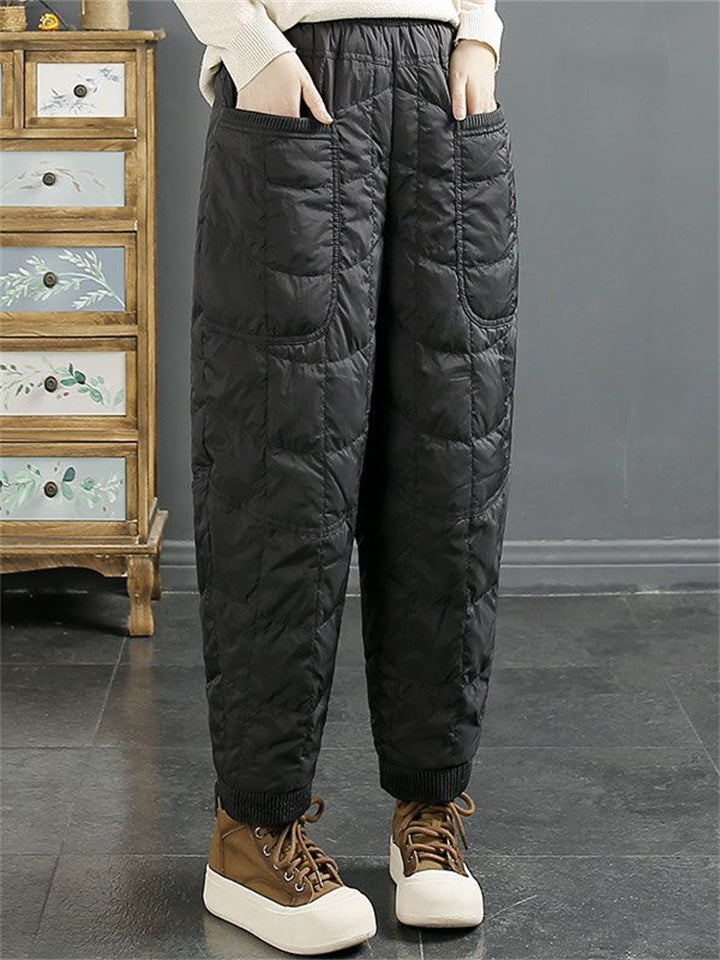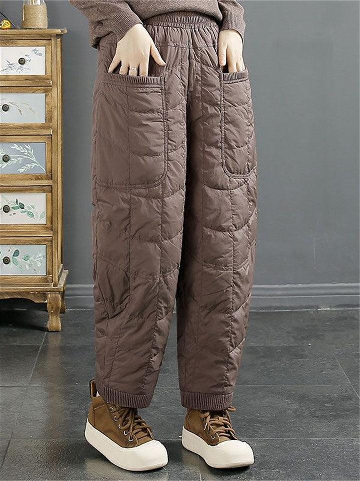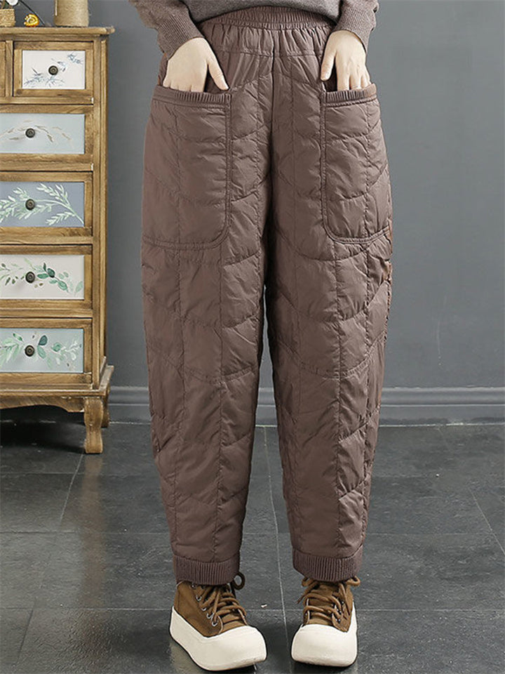 Female Square Plaid Cotton-padded Pants with Large Pockets