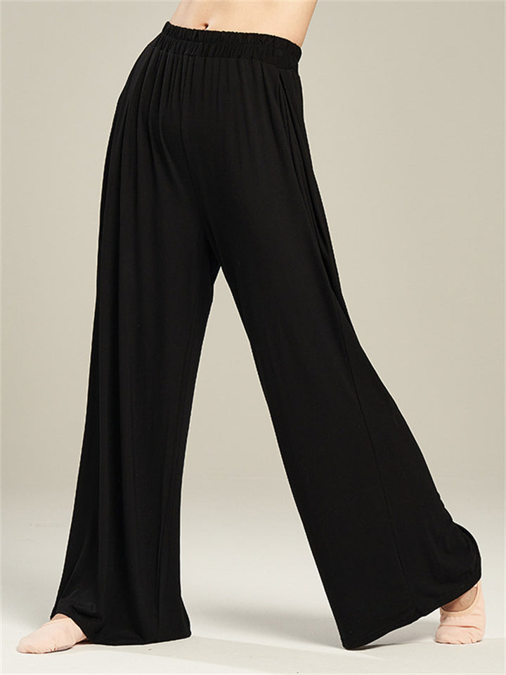 Women's Ethnic Style Embroidery Solid Color Elastic Waist Wide Leg Pants