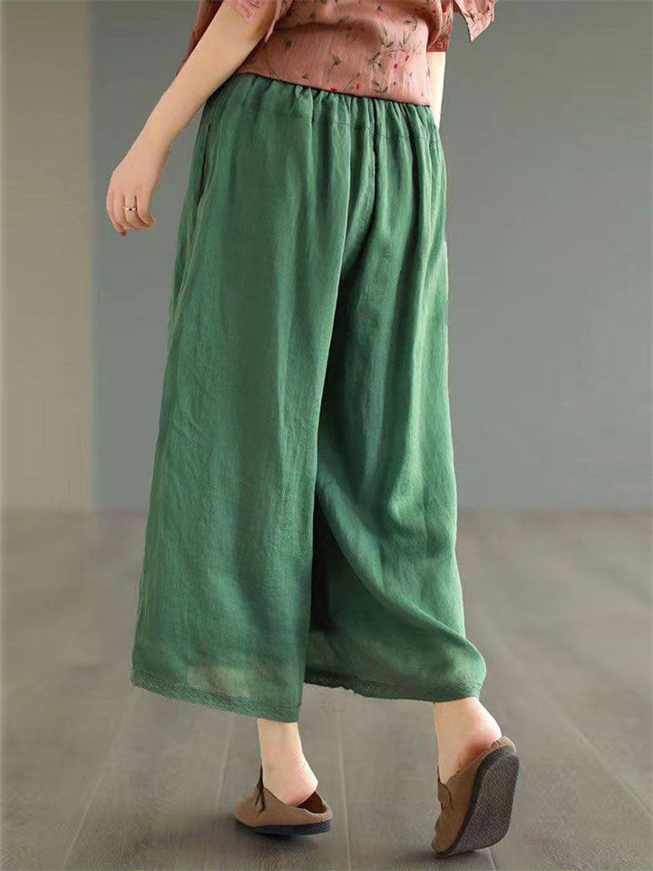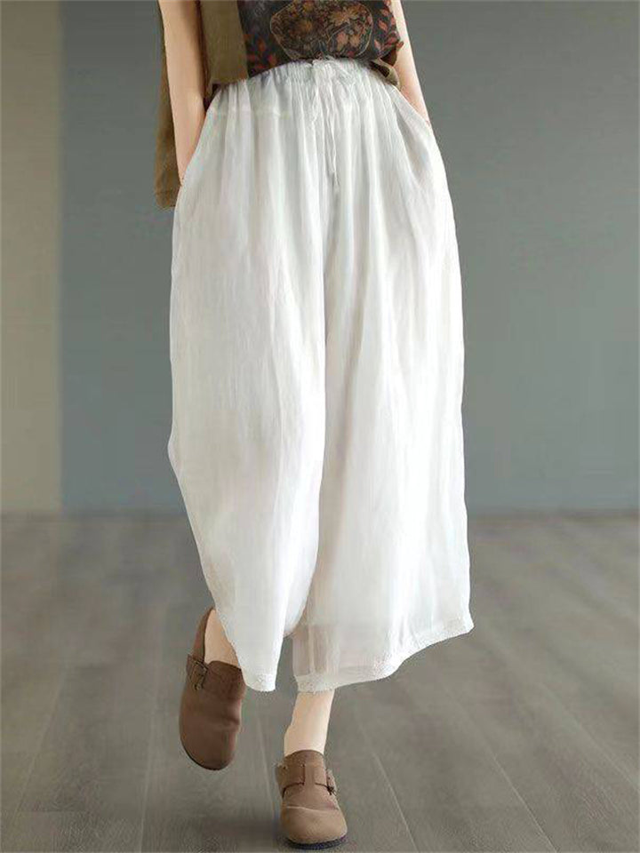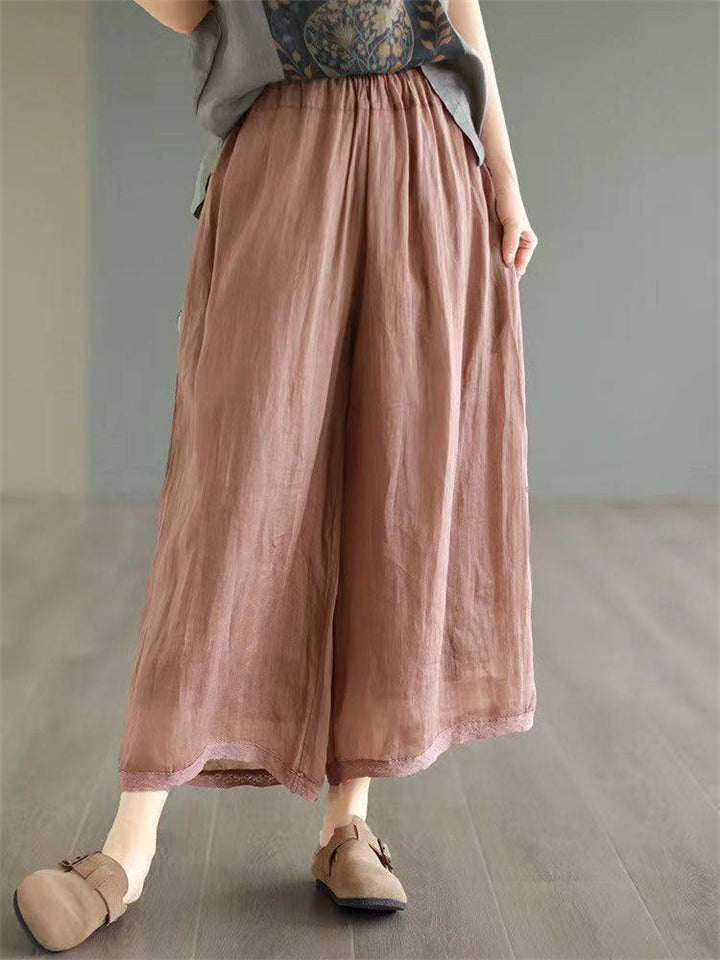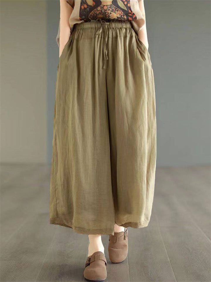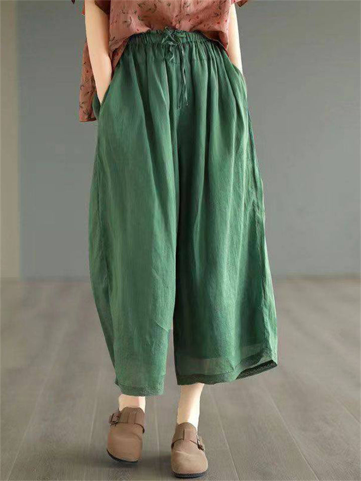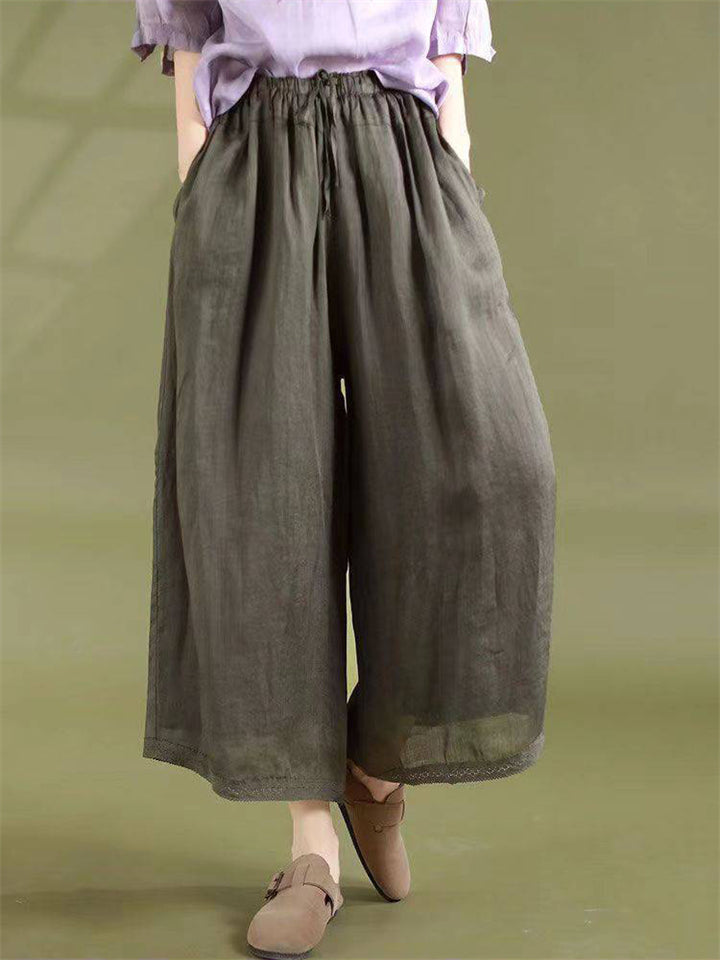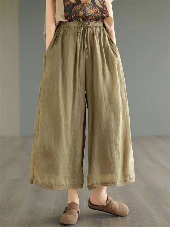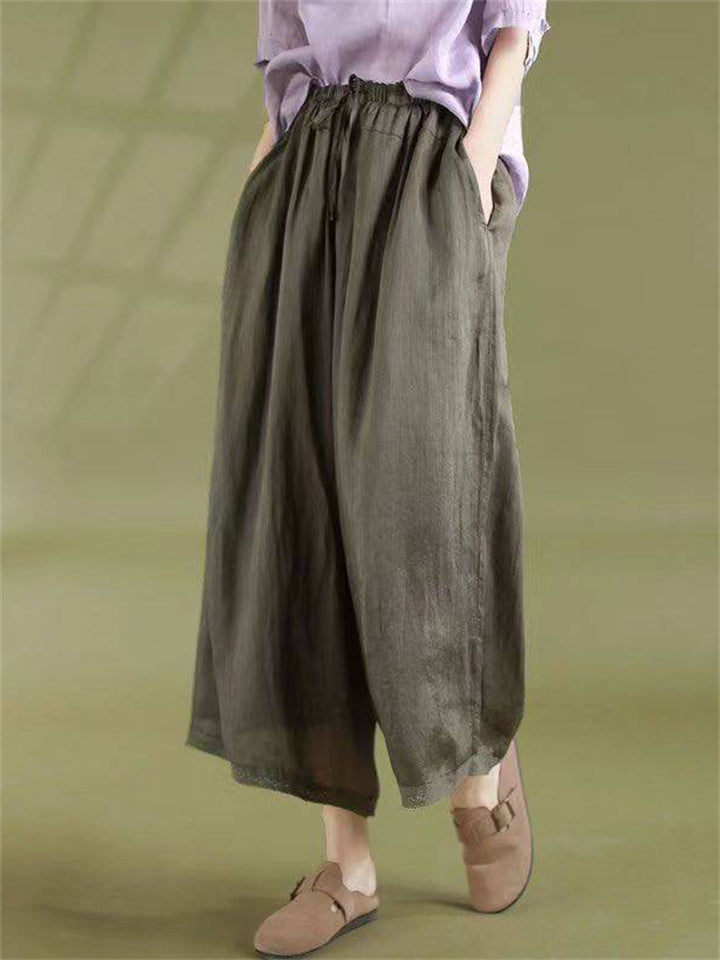 Ladies Double Lining Cotton Linen Lightweight Pants