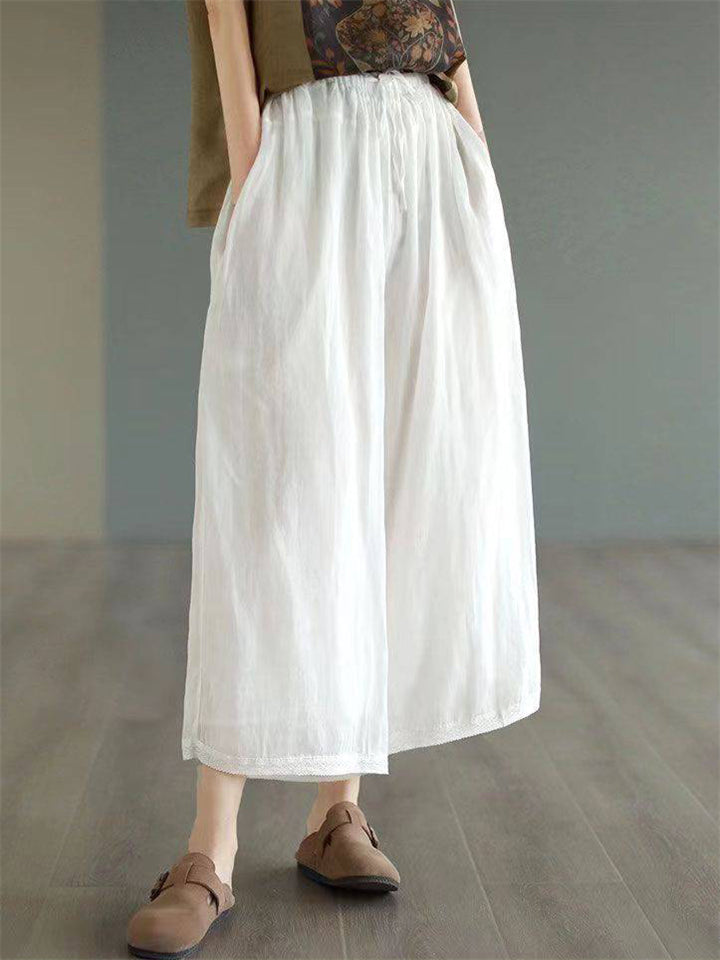 Women's Simple Comfy Ethnic Style Embroidered Wide Leg Pants