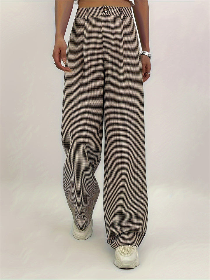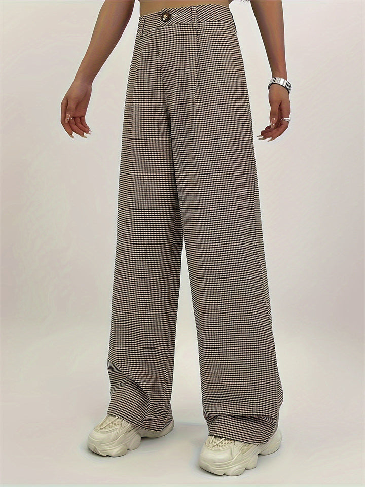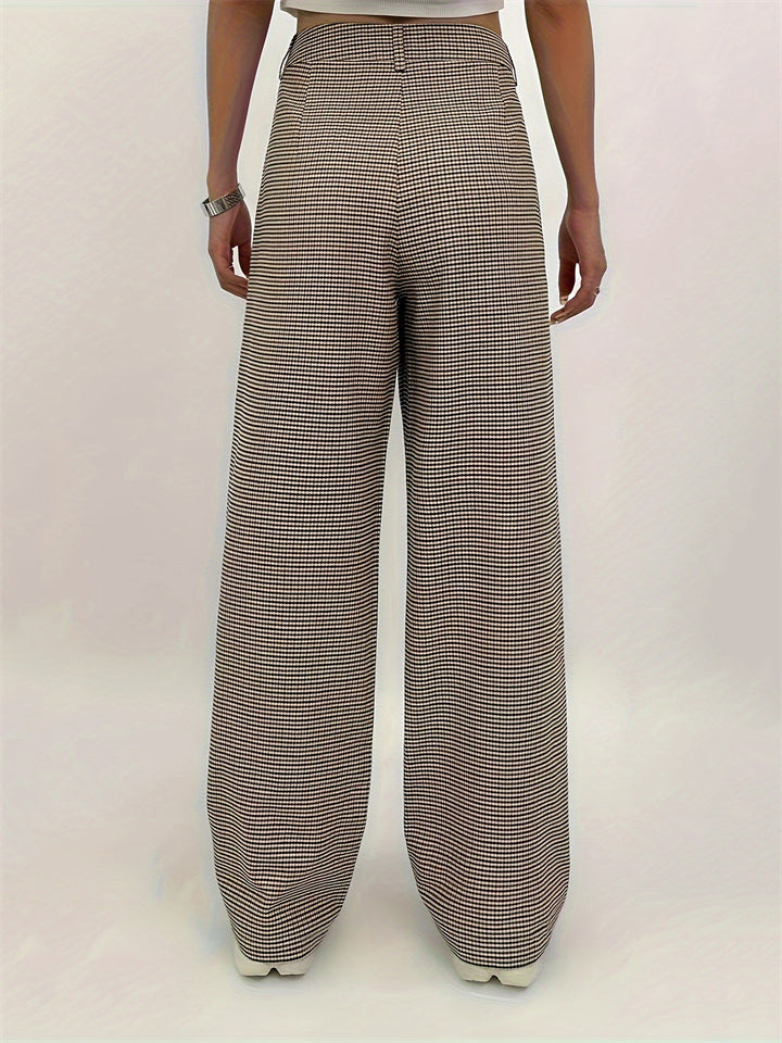 Female Leisure Black & Brown Plaid Wide Leg Trousers