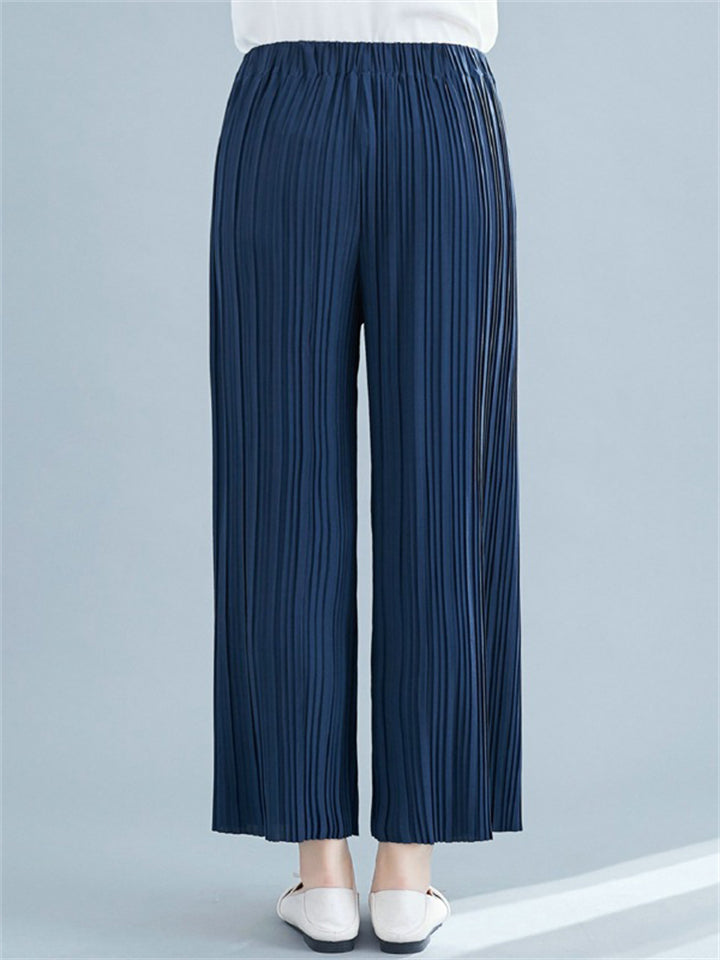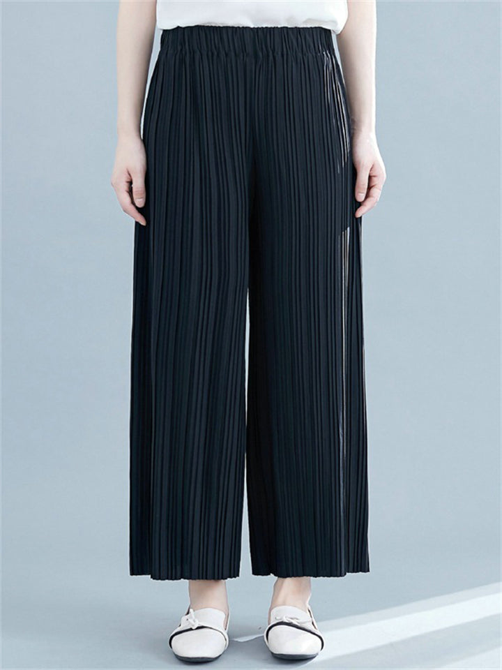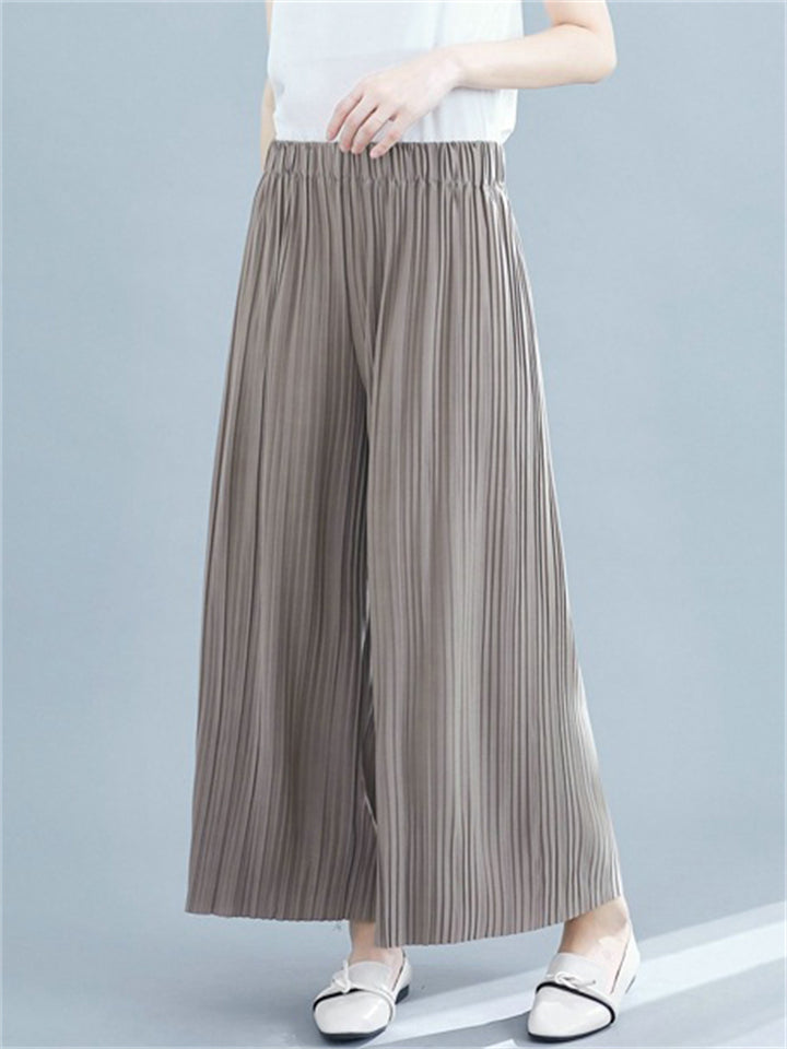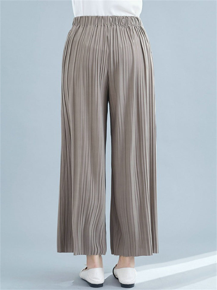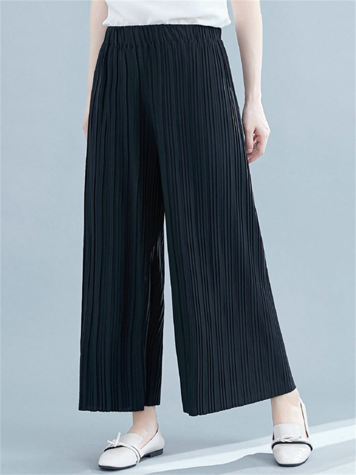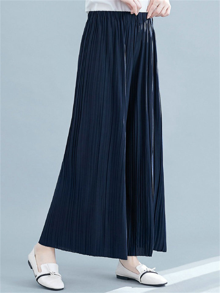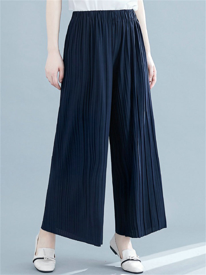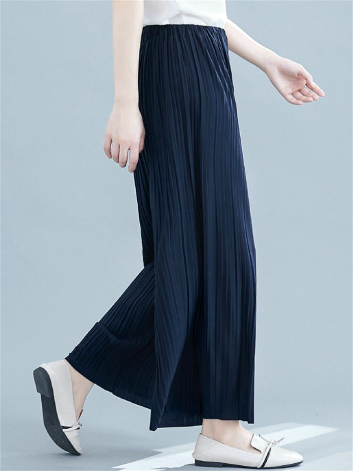 Ladies Solid Color Temperament Wide Leg Pleated Pants