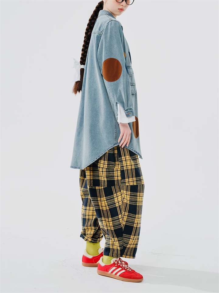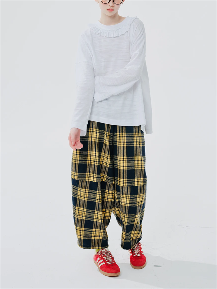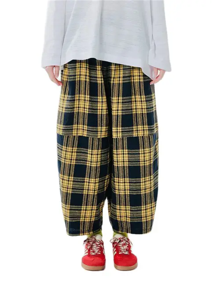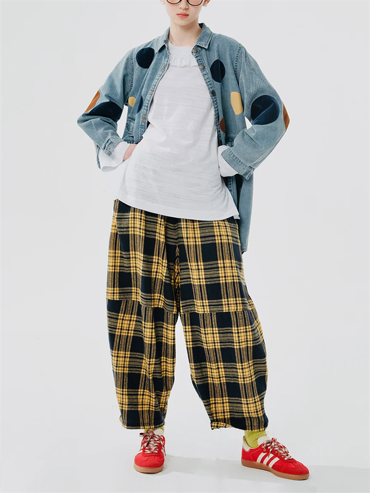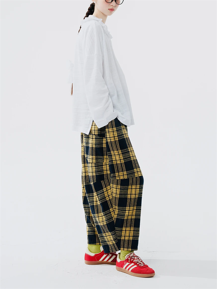 Women's Retro Lazy Style Patchwork Plaid Wide Leg Pants
