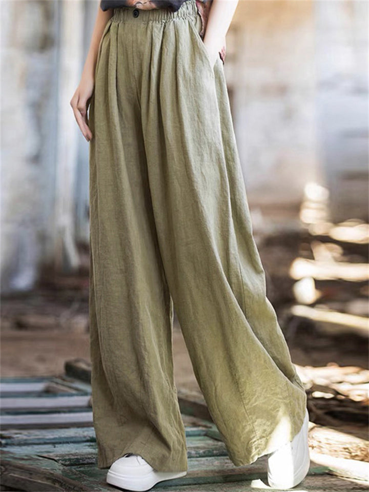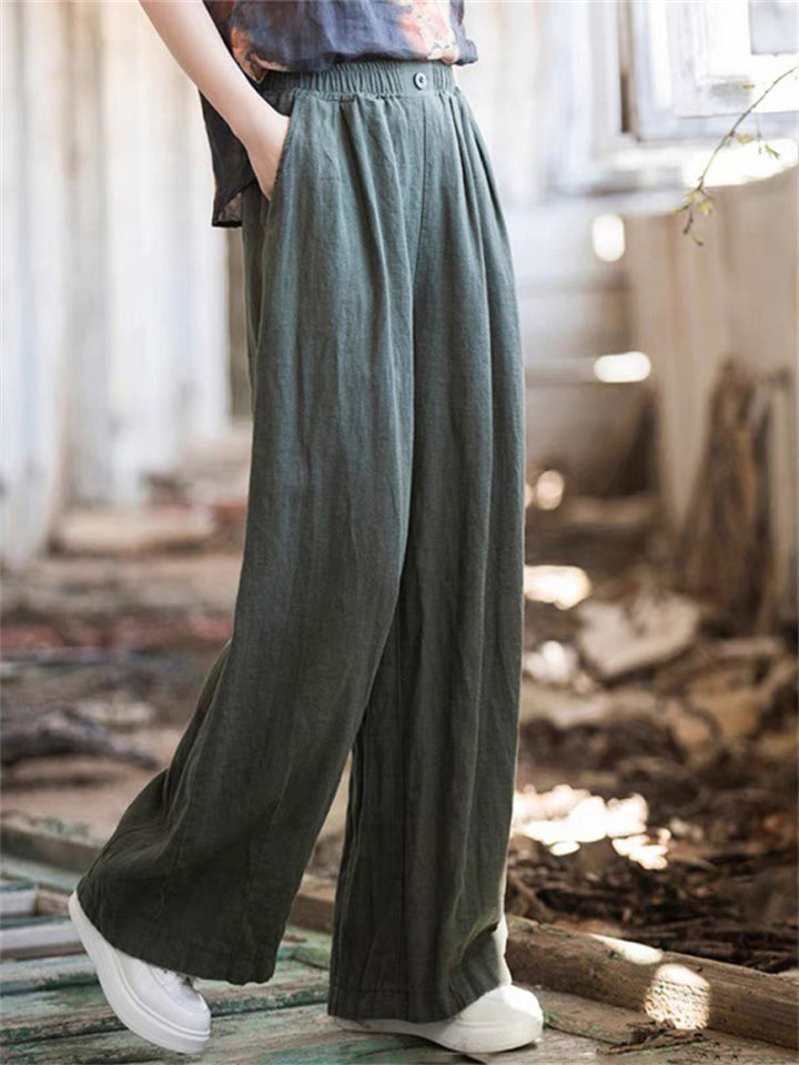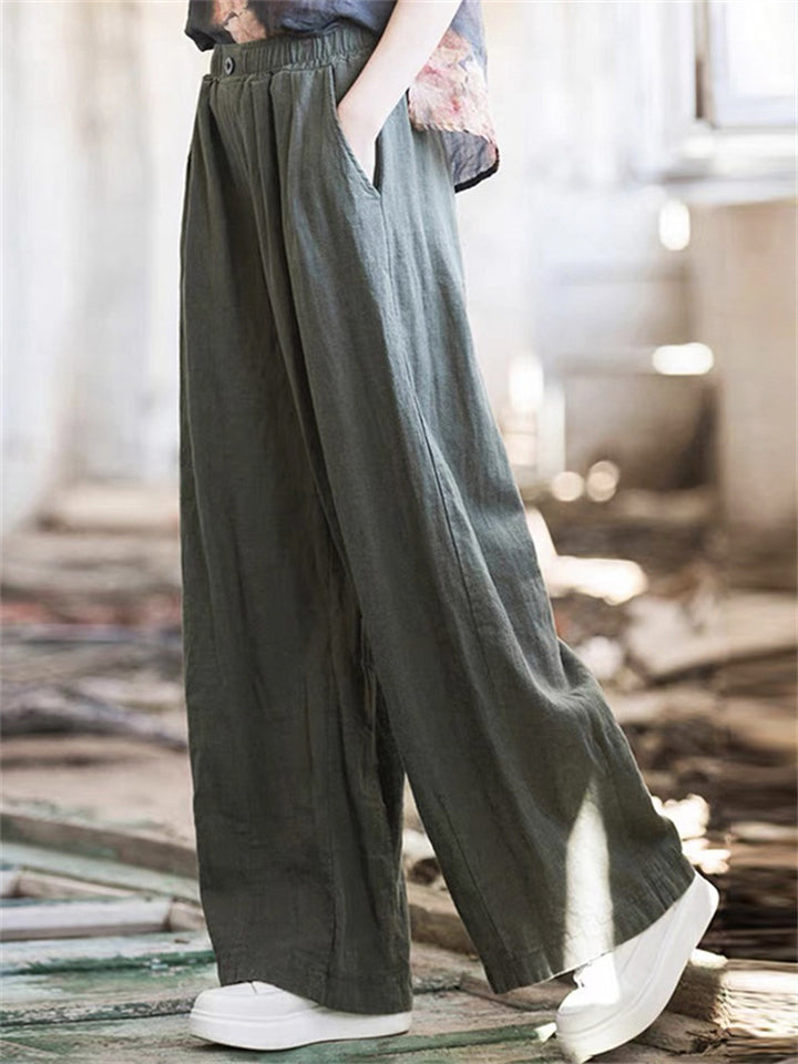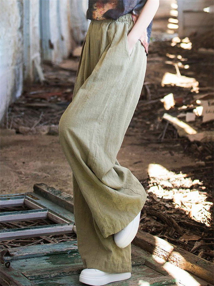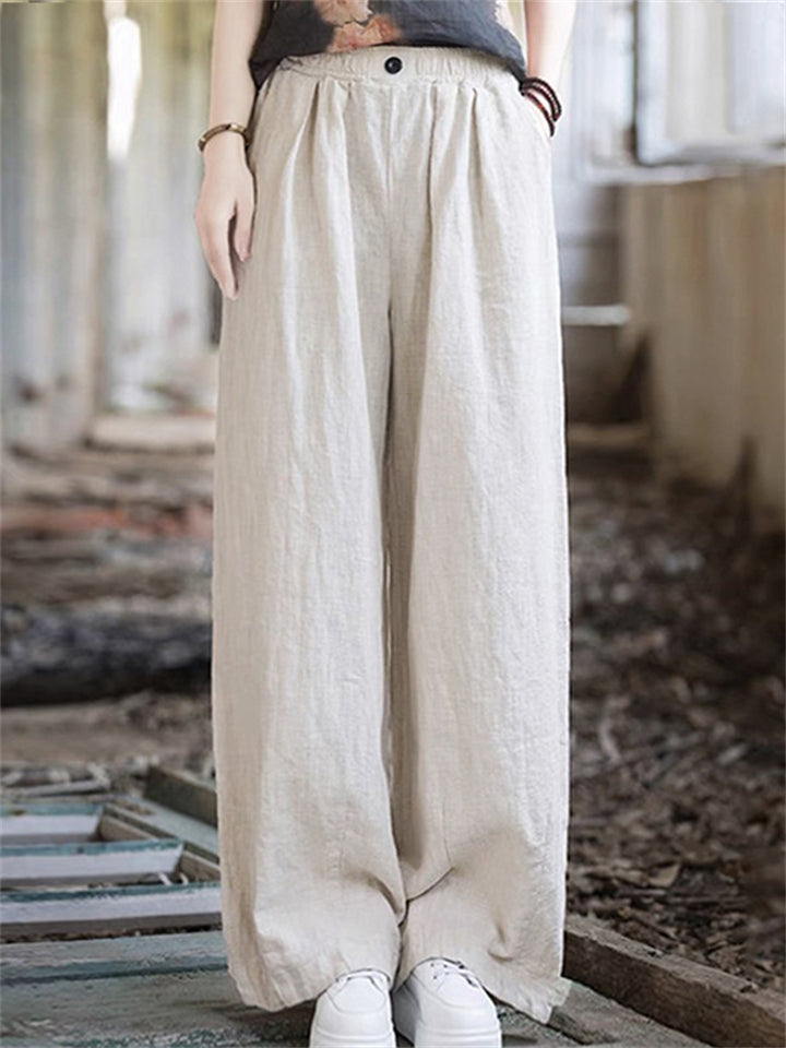 Women's Simple Comfy Ethnic Style Embroidered Wide Leg Pants