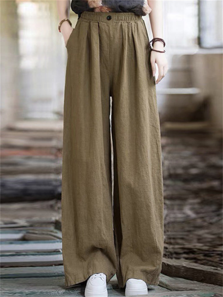 Women's Ethnic Style Embroidery Solid Color Elastic Waist Wide Leg Pants