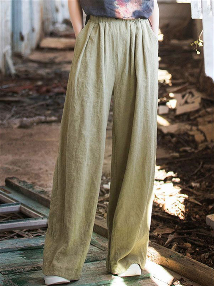 Women's Summer Cool Solid Color Elastic Waist Drawstring Pants