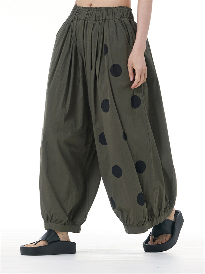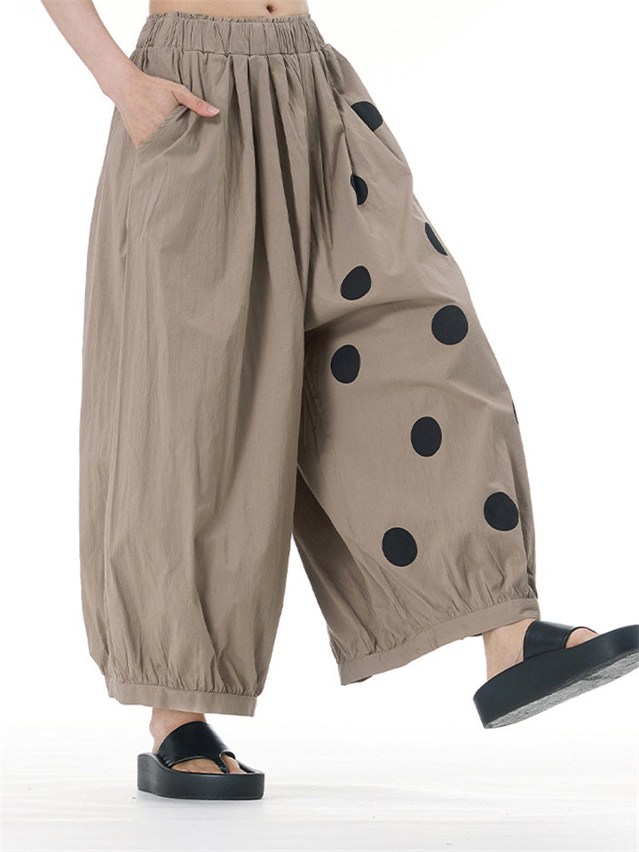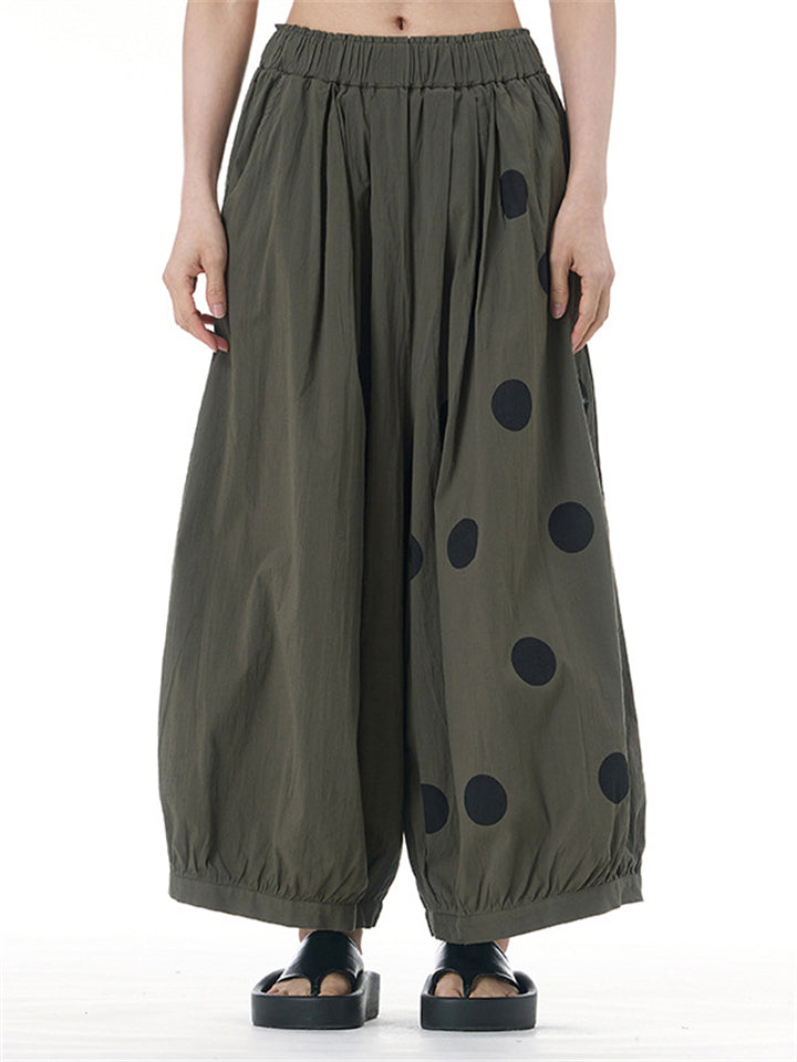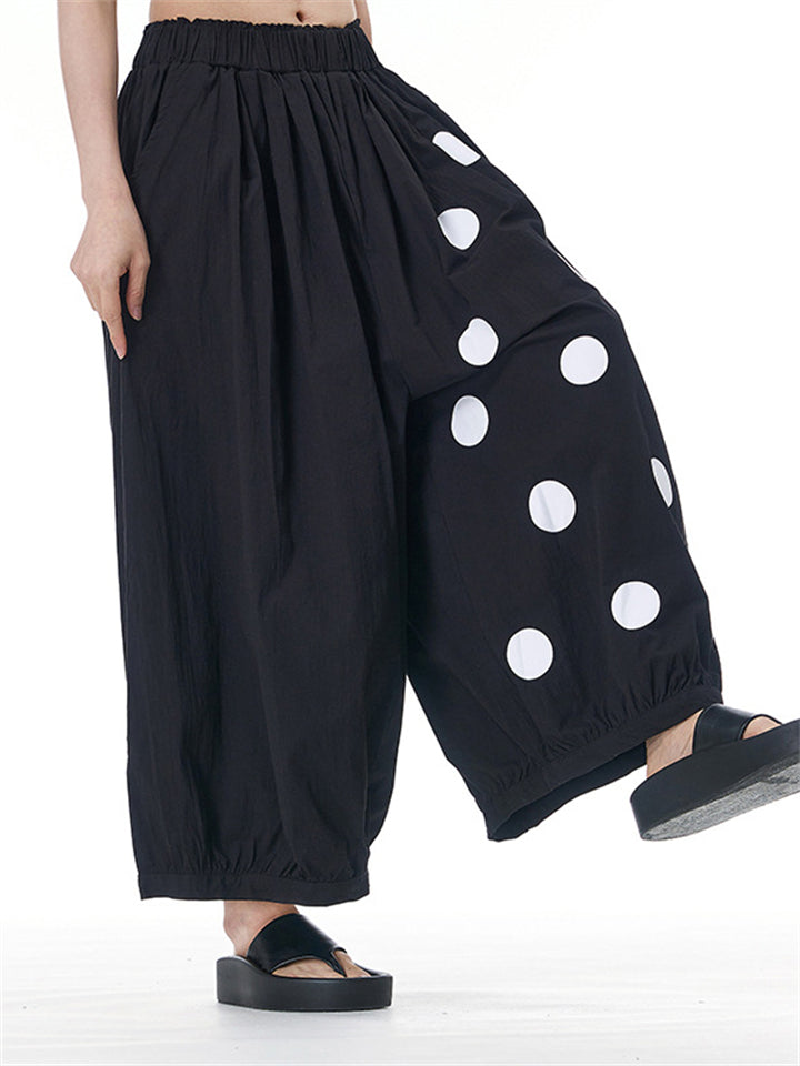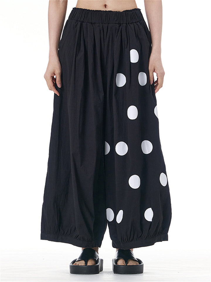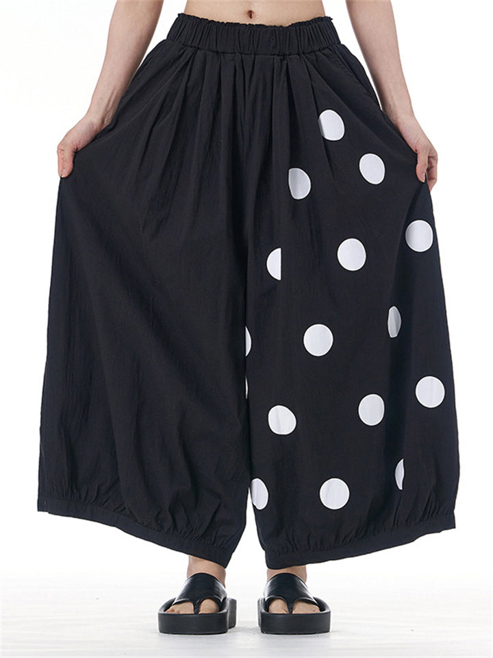 Large Size Polka Dot Print Wide Leg Pants for Women