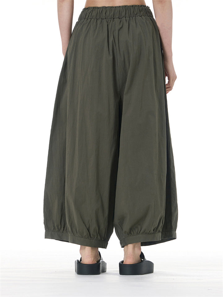 Women's Summer Cool Solid Color Elastic Waist Drawstring Pants
