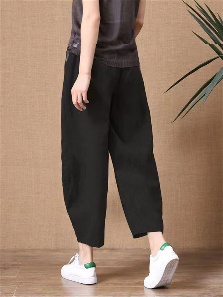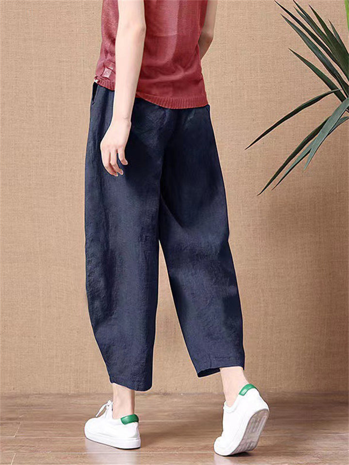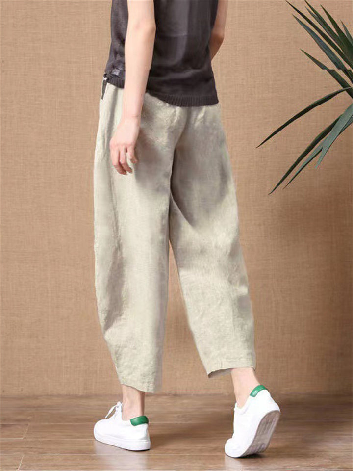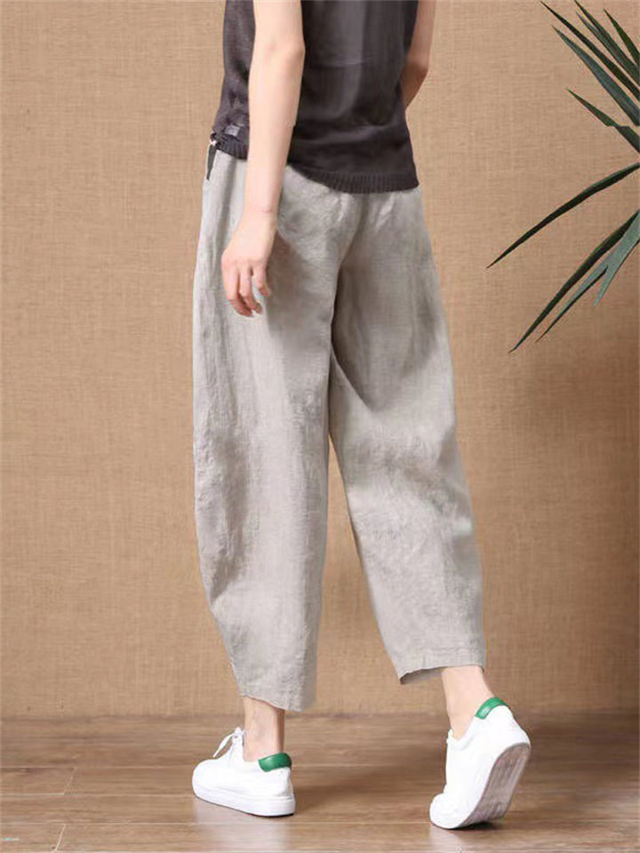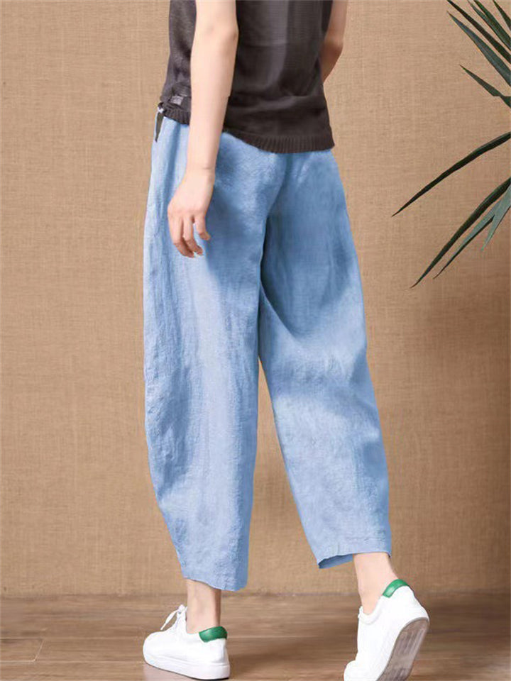 Women's Summer Cool Solid Color Elastic Waist Drawstring Pants