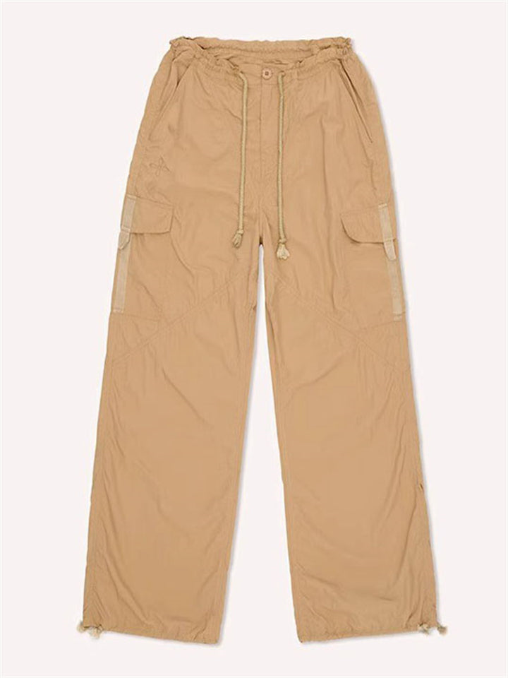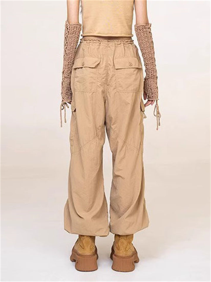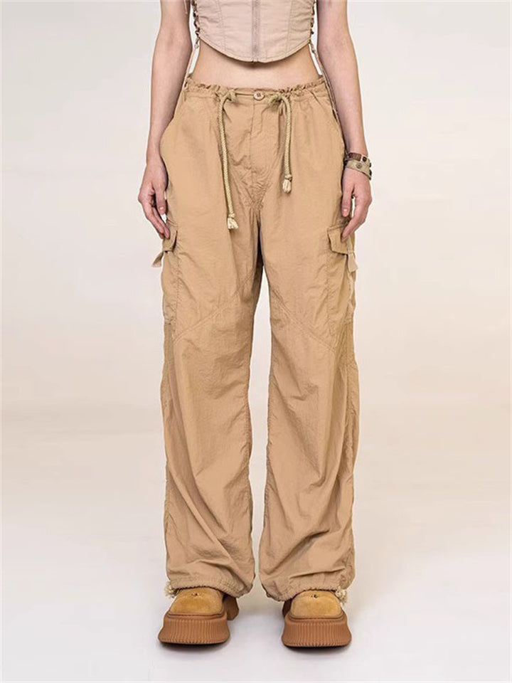 Loose Drawstring Waist Straight-Leg Cargo Pants for Female