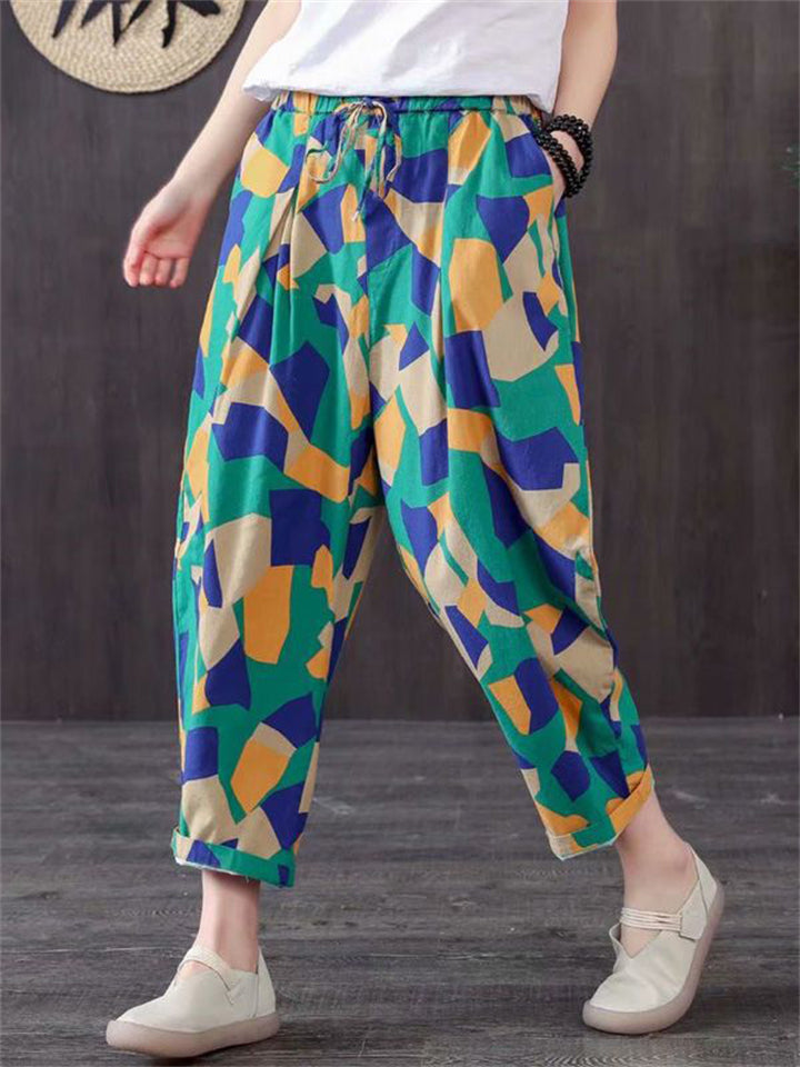 Women's Simple Ethnic Style Printed Comfy Wide Leg Pants